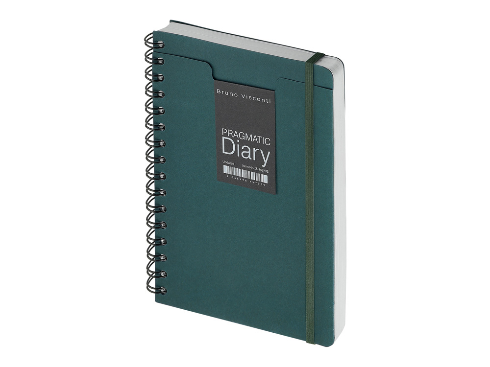 Сочетание удобства, простоты и яркого дизайнерского решения легли в основу создания недатированного ежедневника формата А5 Pragmatic от Bruno Visconti. Открытый гребень позволяет переворачивать страницы на 360 градусов, держать его открытым на столе, комфортно вести записи. Широкая резинка несет в себе как функциональное значение – не позволяет ежедневнику раскрываться и может служить закладкой, так и как элемент дизайнерского решения. Обложка из плотного картона, окрашенного в массе, гибкая по своей конструкции и имеет дополнительную функциональную возможность - хранить визитки, записки благодаря внешнему карману. Блок содержит 256 страниц, изготовленных из бежевой бумаги плотностью 80 г/кв.м Для современных деловых людей, ценящих время, комфорт и индивидуальность.