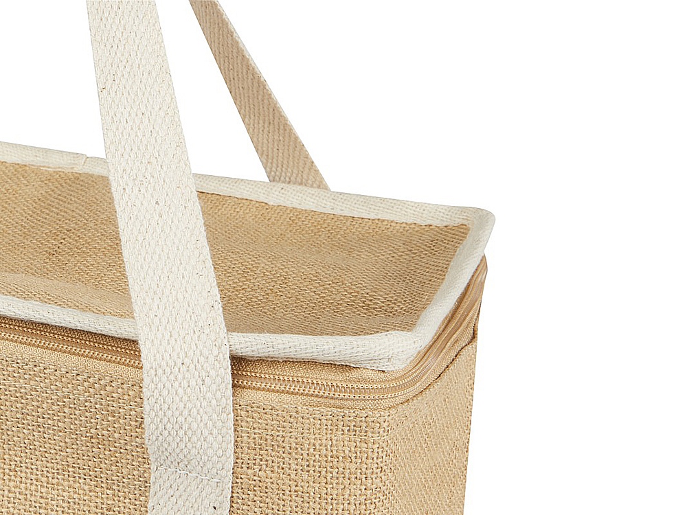 Большая сумка-холодильник Джута изготовлена из прочного и износостойкого ламинированного джута. Имеет большое главное отделение (19 литров), вмещающее шесть бутылок объемом 1,5 л, отделанное пищевой алюминиевой изоляцией, что позволяет хранить продукты, напитки и закуски в холоде, сухости и безопасности на протяжении нескольких часов. Сумка имеет верхнюю застежку на молнии, передний карман и 2 тканых хлопковых ручки для переноски (50 x 2,5 см). Сделано в Индии и сертифицировано OEKO-TEX®.