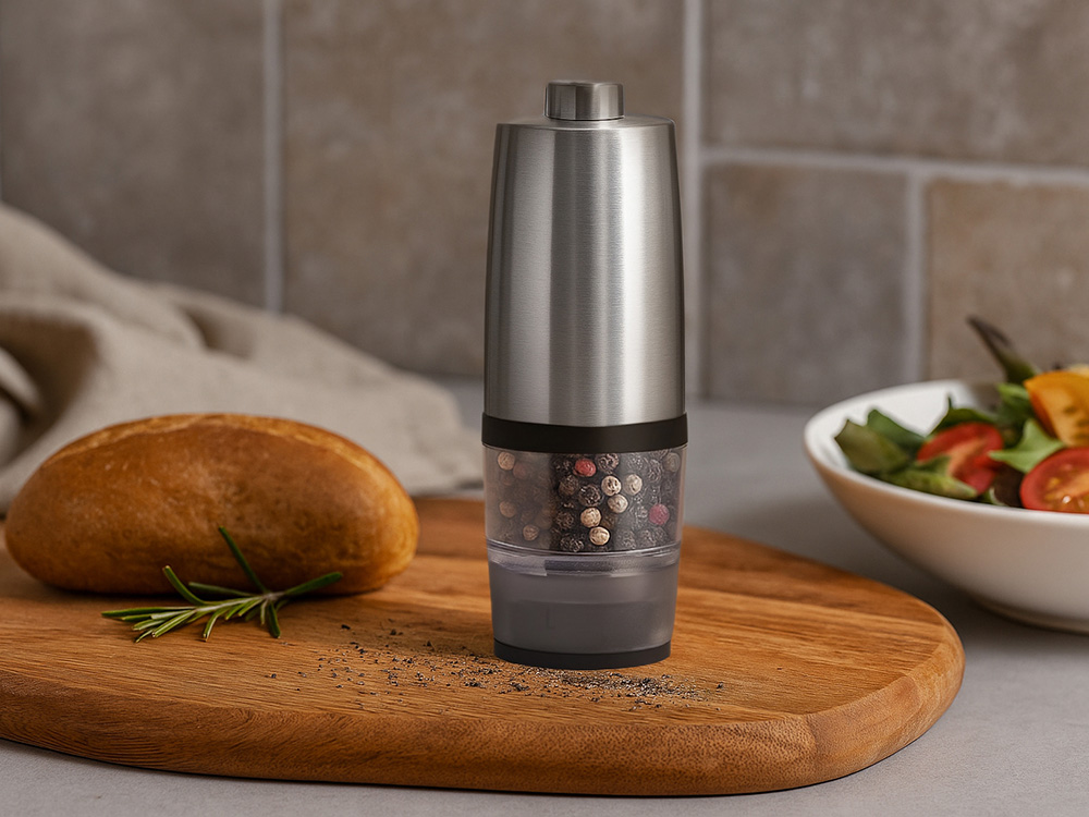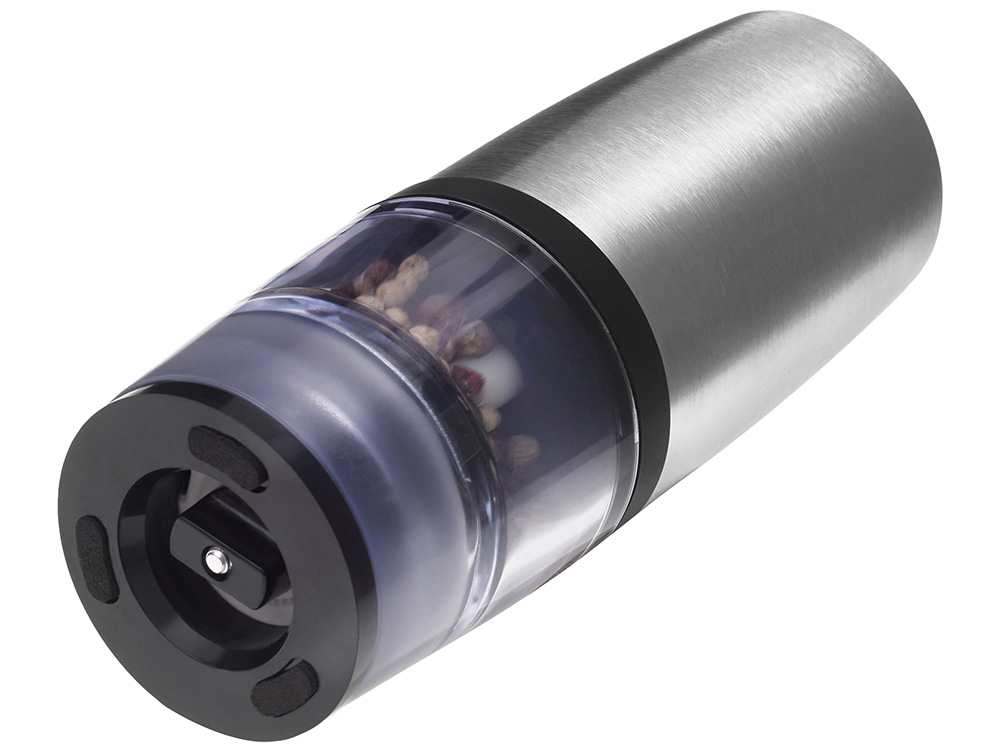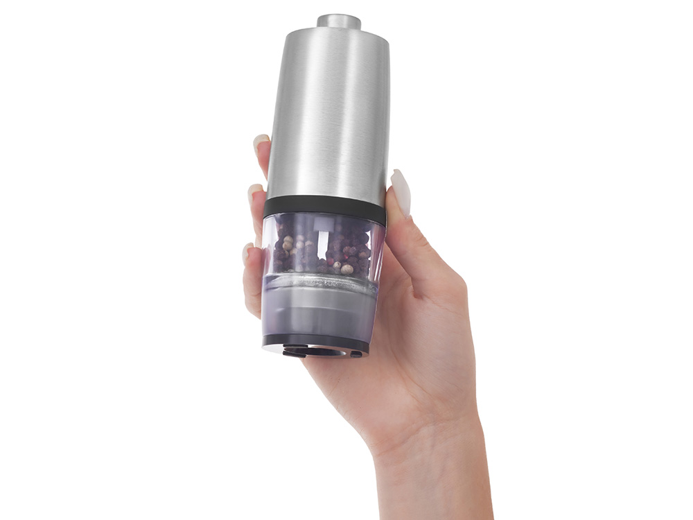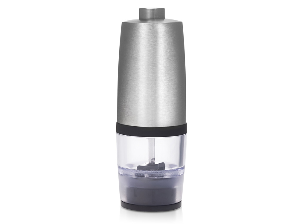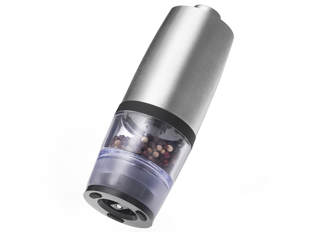 Электрическая мельница для специй Origanum Современная и удобная электрическая мельница для соли, перца и других специй. Работает от 4 батареек AAA (не входят в комплект) — одним нажатием измельчает специи до нужной степени помола. - Корпус из нержавеющей стали — прочный и стильный - Керамические жернова — долговечность и чистый вкус - Емкость из ударопрочного прозрачного пластика — удобно контролировать остаток - Объём: 20 г — компактный и вместительный формат для ежедневного использования Идеальный аксессуар для кухни и стильный подарок для тех, кто ценит вкус и эстетику.