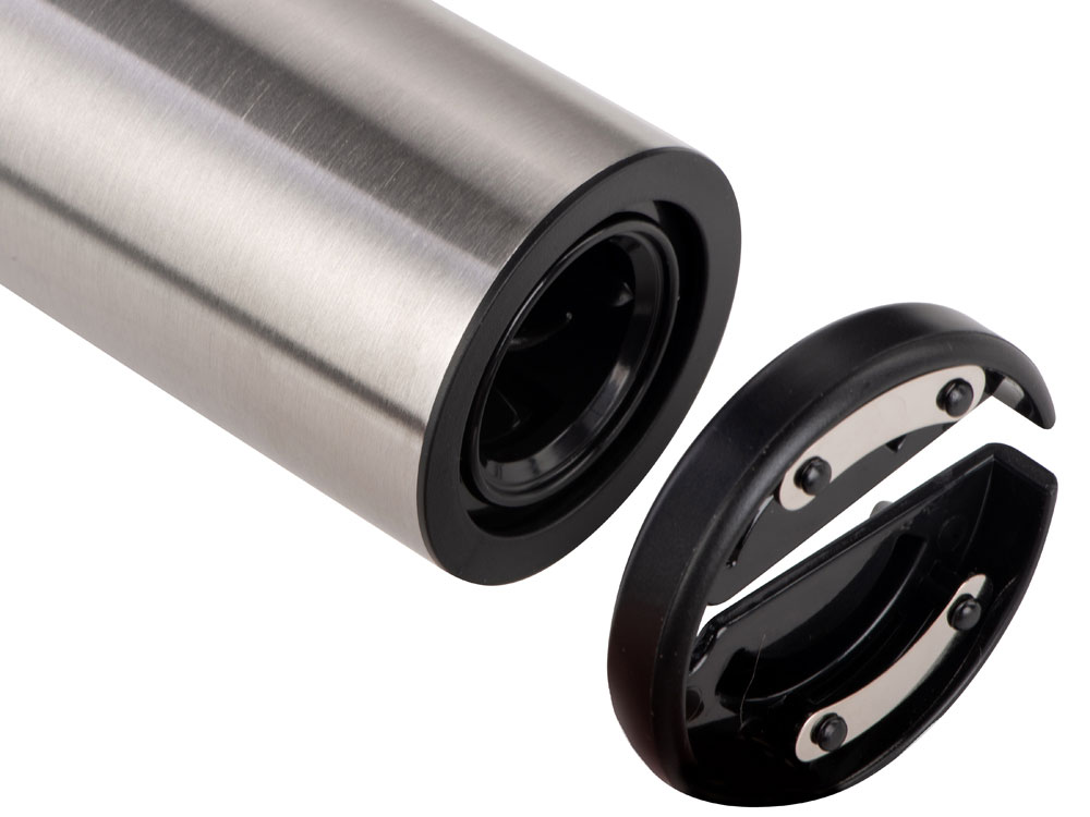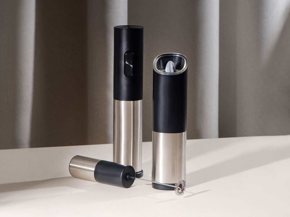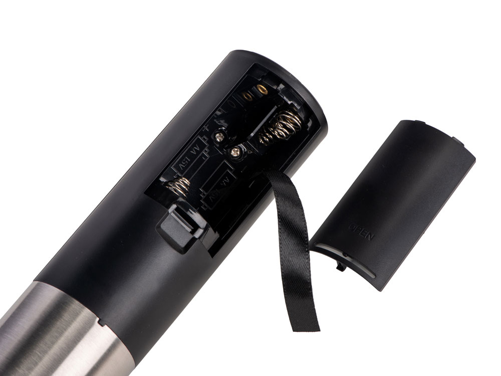 Электрический штопор RIOJA бренда Master of Wine — прекрасный подарок любителю вина: эта модель поставляется в комплекте с подставкой, которая также может выступать в роли ножа для фольги. Благодаря устойчивой и функциональной подставке штопор всегда будет под рукой, а внешний вид Rioja станет настоящим украшением барной стойки или кухни. Верхняя часть корпуса выполнена из матового пластика, который легко очищается от загрязнений влажной тканью. Тактильно приятный текстурный материал для удобства использования. Кнопки спуска и поднятия штопора визуально выглядят как одна большая кнопка, при нажатии на нижнюю часть которой спираль вкручивается в пробку по часовой стрелке, а при нажатии на верхнюю — освобождает пробку, вращаясь в противоположном направлении. От пользователя требуется лишь правильно расположить штопор на пробке и нажать на кнопку. Модель работает от 4 батареек АА, не имеет внутреннего аккумулятора. Батарейки не прилагаются в комплекте. - подставка с функцией ножа для фольги в комплекте - легко откупоривает вино - эргономичное строение: спираль полностью спрятана в корпусе, что обеспечивает долгий срок службы и защищает от порезов по неосторожности - дизайн продолжает общий стиль Master of Wine, можно сочетать с другими товарами бренда для создания сета - украсит собой любую кухню, благодаря подставке можно разместить удобным образом - понятная инструкция на русском языке в комплекте Rioja предназначен для пробок диаметром 20-24 мм и высотой до 44 мм. Внешний диаметр горлышка бутылок не должен превышать 35 мм, внутренний — быть в диапазоне от 17,5 до 23 мм.