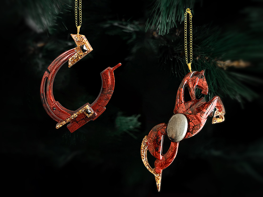 Изысканный дуэт талисманов, наполненных символизмом и энергией в духе Василия Кандинского. В набор входят две уникальные фигурки: лошадь и подкова, созданные в оттенке Гранатовый шёлк — насыщенном, благородном бордо с лёгким шелковистым отблеском, напоминающем вечернее праздничное платье. Игрушки бережно упакованы в картонную коробку с внутренним вкладышем, который надежно фиксирует их внутри. Для вашего удобства к каждой игрушке прилагается элегантная цепочка или ленточка, с помощью которой вы легко сможете подвесить их на ёлку.