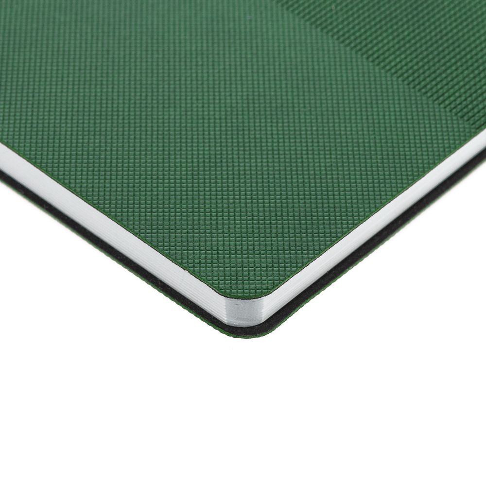 Ежедневник с гибкой обложкой, выполнен из материала Canyon, зеленый FF, дополнен ляссе в цвет обложки. Блинтовое тиснение на обложке создает эффект вязаного полотна.