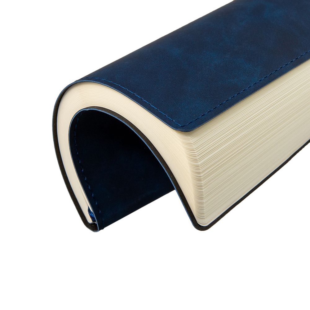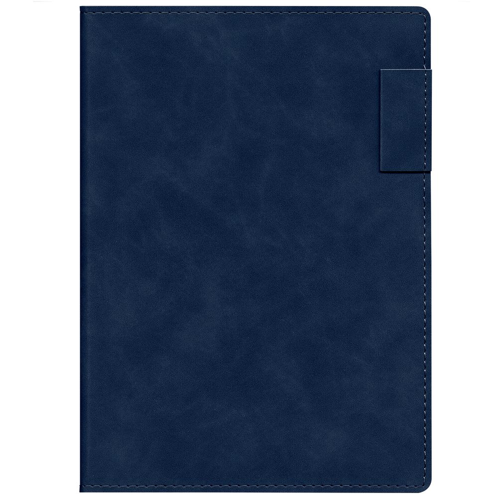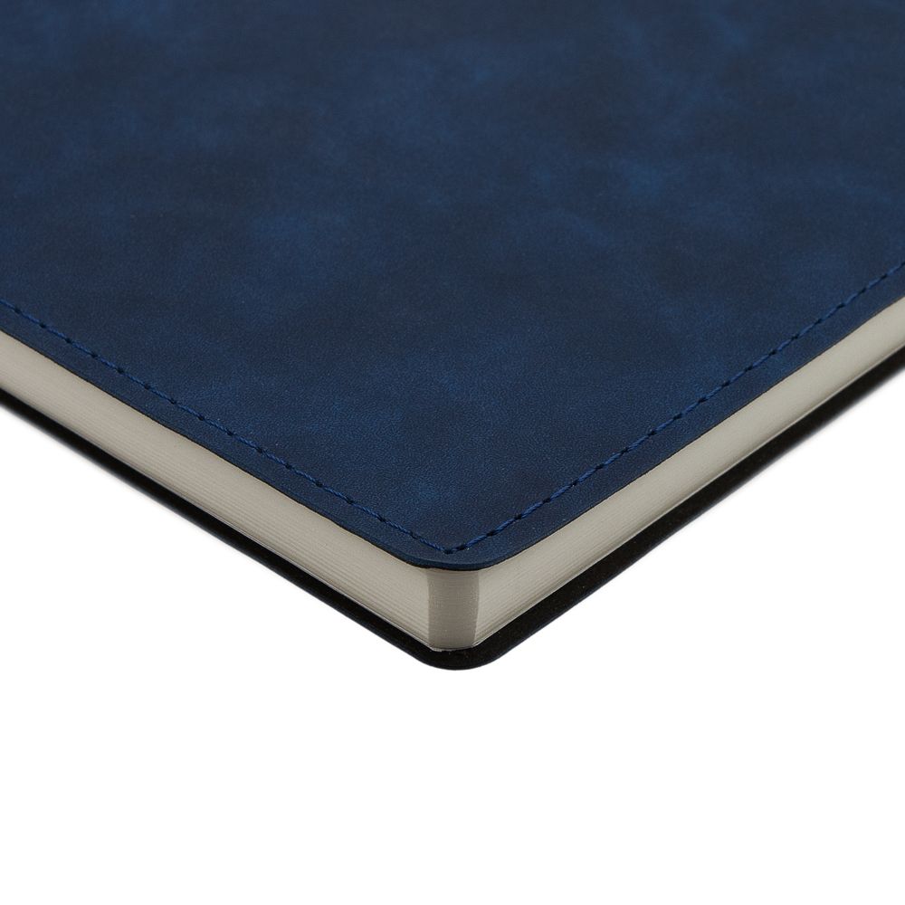 Ежедневник  17х24 см, с гибкой обложкой, выполнен из материала Nubuck Touch, темно-синий ХХ, дополнен петлей-лейблом для ручки и двойным ляссе в цвет материала.
