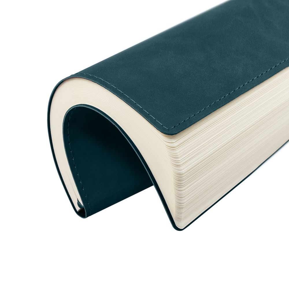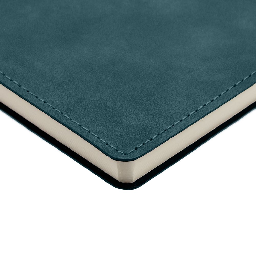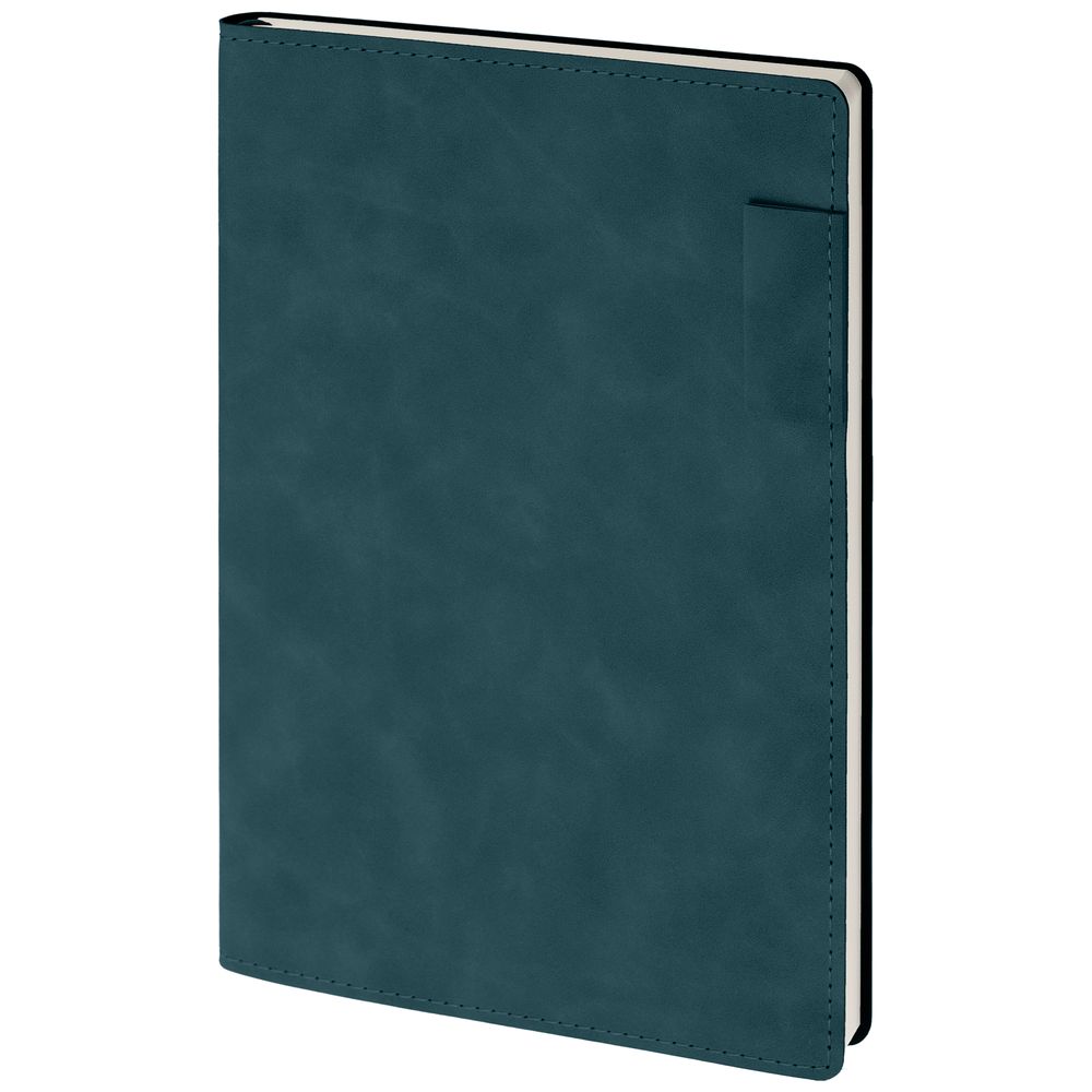 Ежедневник  17х24 см, с гибкой обложкой, выполнен из материала Nubuck Touch, темно-зеленый VV, дополнен петлей-лейблом для ручки и двойным ляссе в цвет материала.
