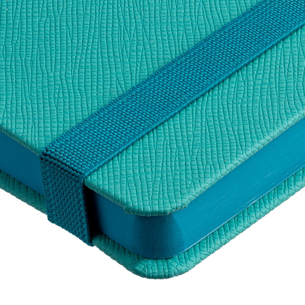 Ежедневник с полутвердой обложкой выполнен из материала Nice Touch,  морская волна II, и дополнен резинкой шириной 1 см и ляссе в цвет обложки.
