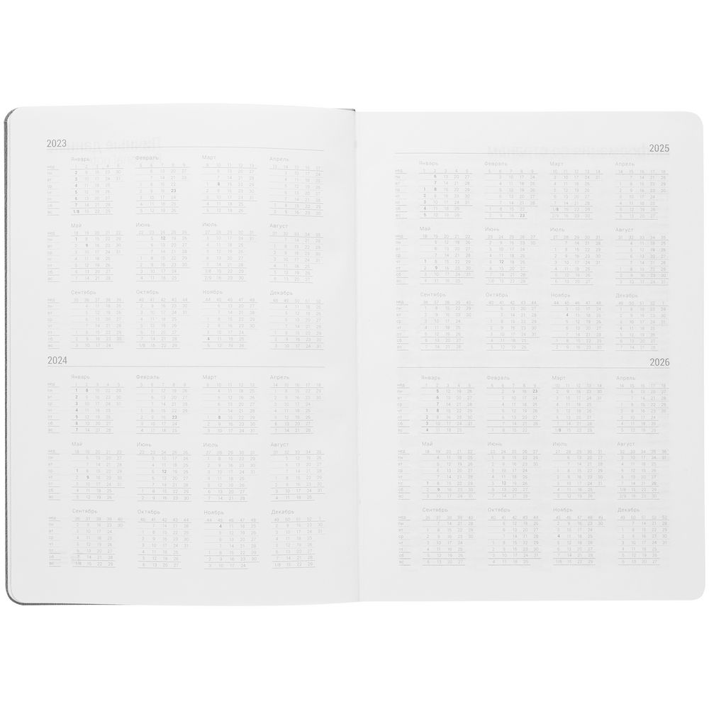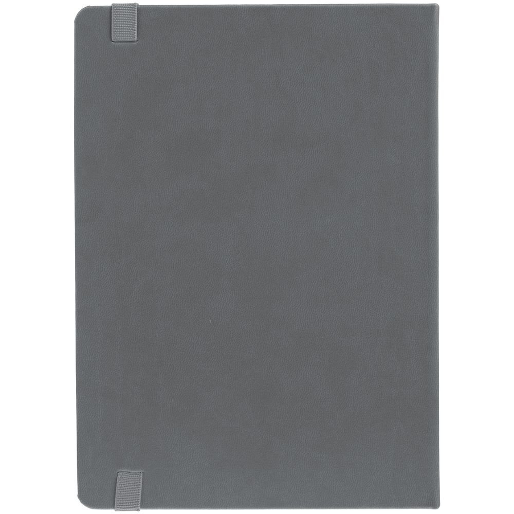 Ежедневник с твердой обложкой, выполнен из материала Latte, серый СС, обрез серого цвета, дополнен резинкой и ляссе серого цвета.