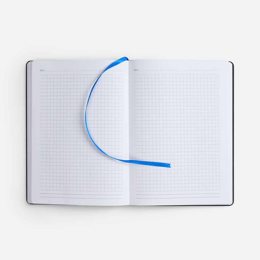 Ежедневник в клетку, с гибкой обложкой, выполнен из материала Nubuck Touch, синий НН, дополнен ляссе синего цвета.
