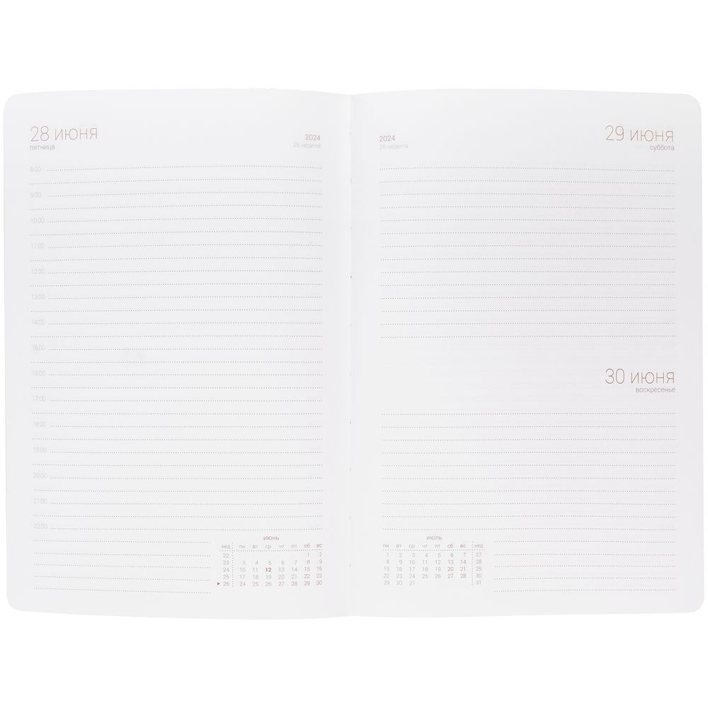 Ежедневник с твердой обложкой, выполнен из материала Latte, красный РР, дополнен ляссе в цвет обложки.