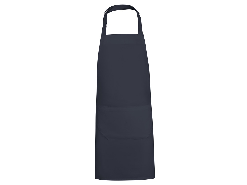Длинный твиловый фартук из переработанного полиэстера и хлопка. Шейный ремешок с регулируемой застежкой. Завязки по бокам. Два передних кармана.