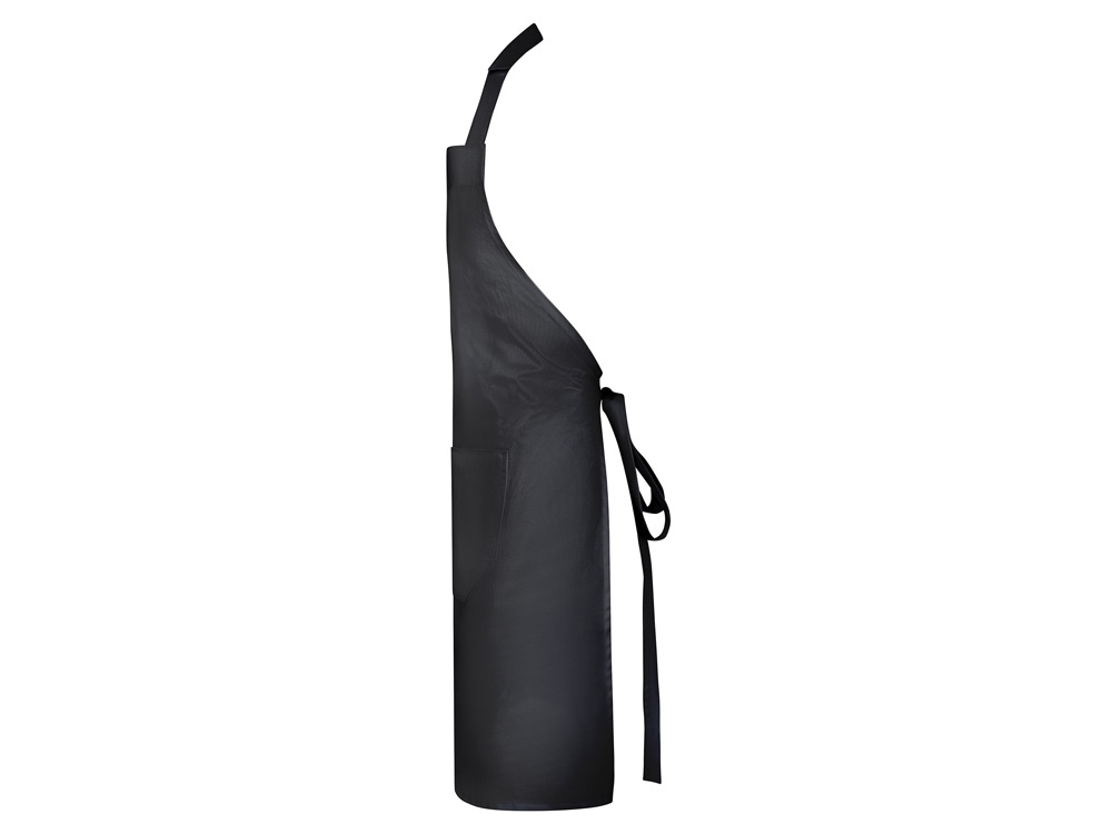 Длинный твиловый фартук из переработанного полиэстера и хлопка. Шейный ремешок с регулируемой застежкой. Завязки по бокам. Два передних кармана.