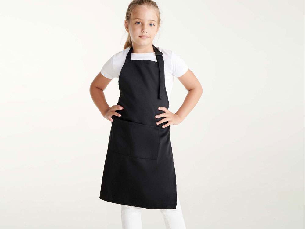 Фартук Benoit - оптимальная длина, удобная регулируемая лямка на шее с пластиковой пряжкой, боковые завязки и вместительный карман спереди.
