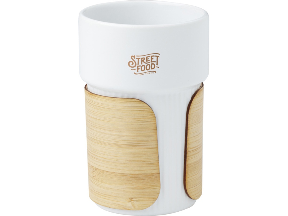 Стильный керамический стакан Fika поставляется со съемным бамбуковым чехлом, который идеально подходит для питья горячих напитков. Используемый бамбук поступает из устойчивых, экологически чистых и социально ответственных источников. Объем: 340 мл. Поставляется в коробке из переработанного картона. 94% Stoneware.
