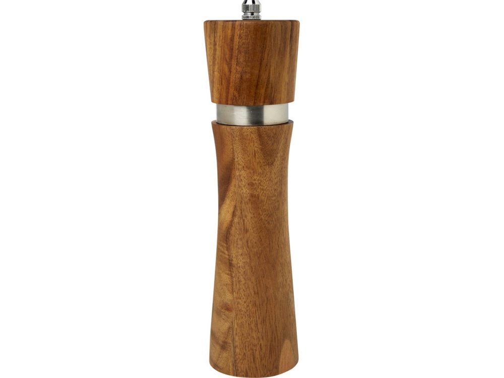 Мельница для соли и перца из древесины акации. Плавный поворотный механизм и корпус эргономичной формы обеспечивают комфортное перемалывание. FSC certified acacia wood.