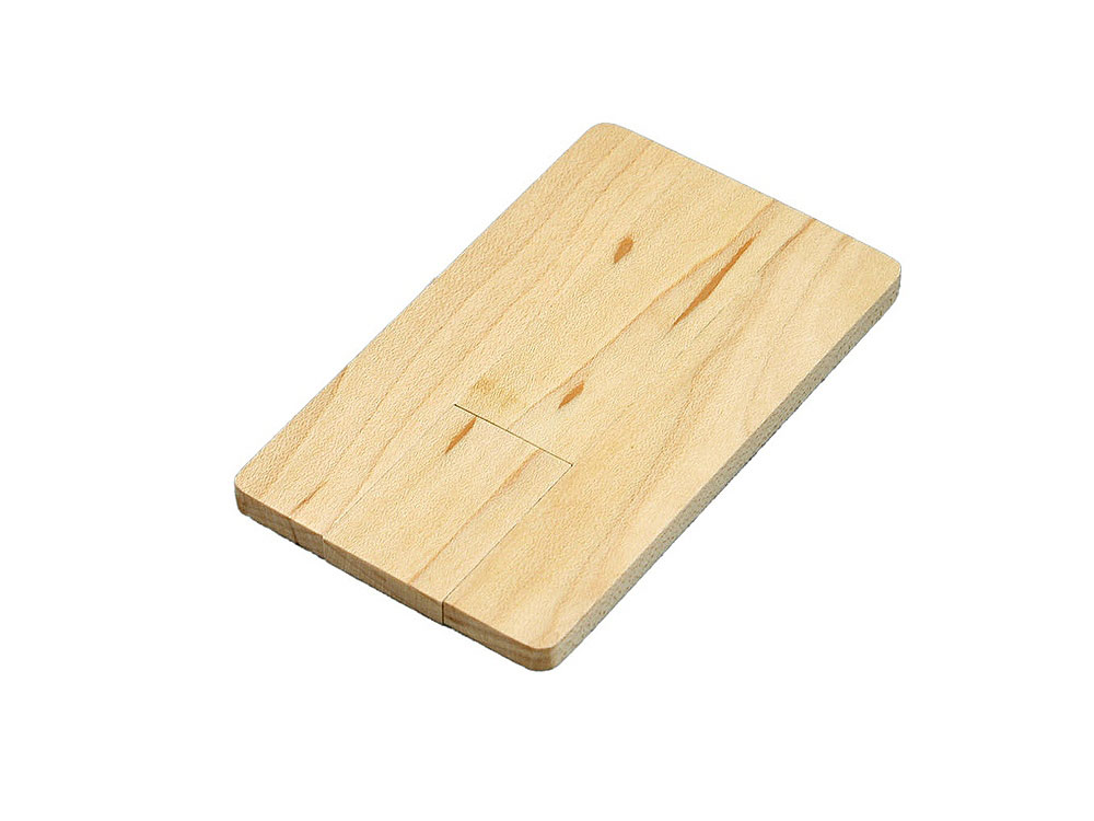 Флеш-накопитель в виде деревянной карточки с выдвижным механизмом, объем памяти 8 Гб. Деревянный корпус. Cкорость чтения 18 Мб/с. Скорость записи 8 Мб/с.