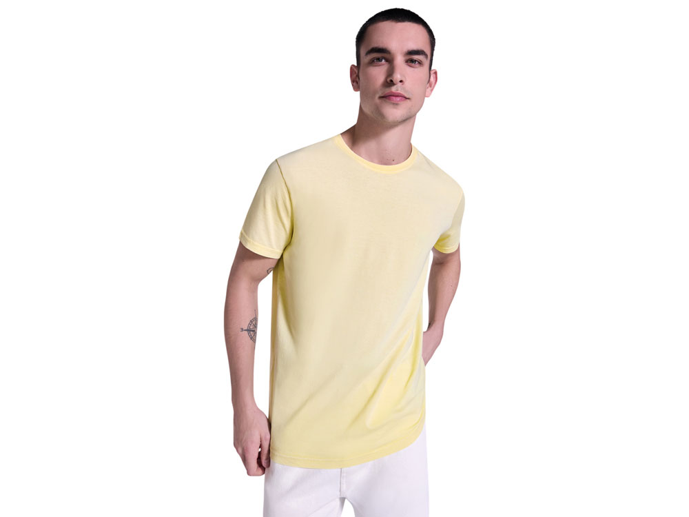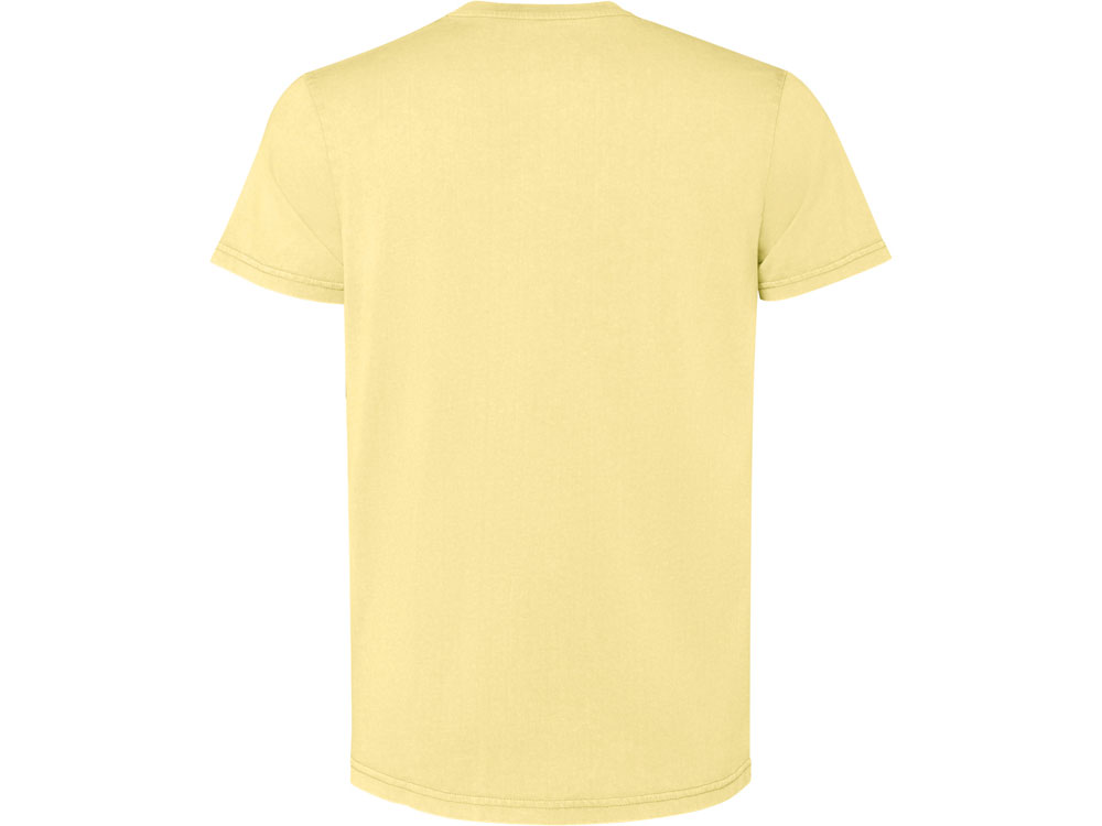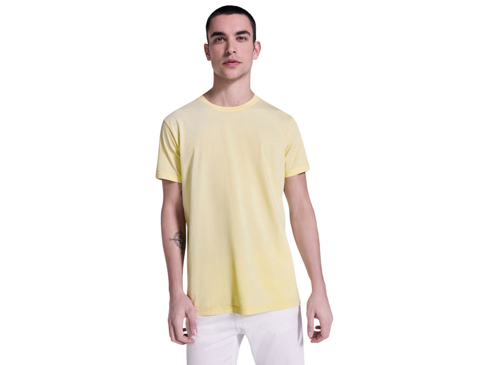 Мужская футболка с коротким рукавом из 100% хлопка с аксидной стиркой. Круглый вырез горловины из риба 1х1. Отстрочка в тон по горловине.