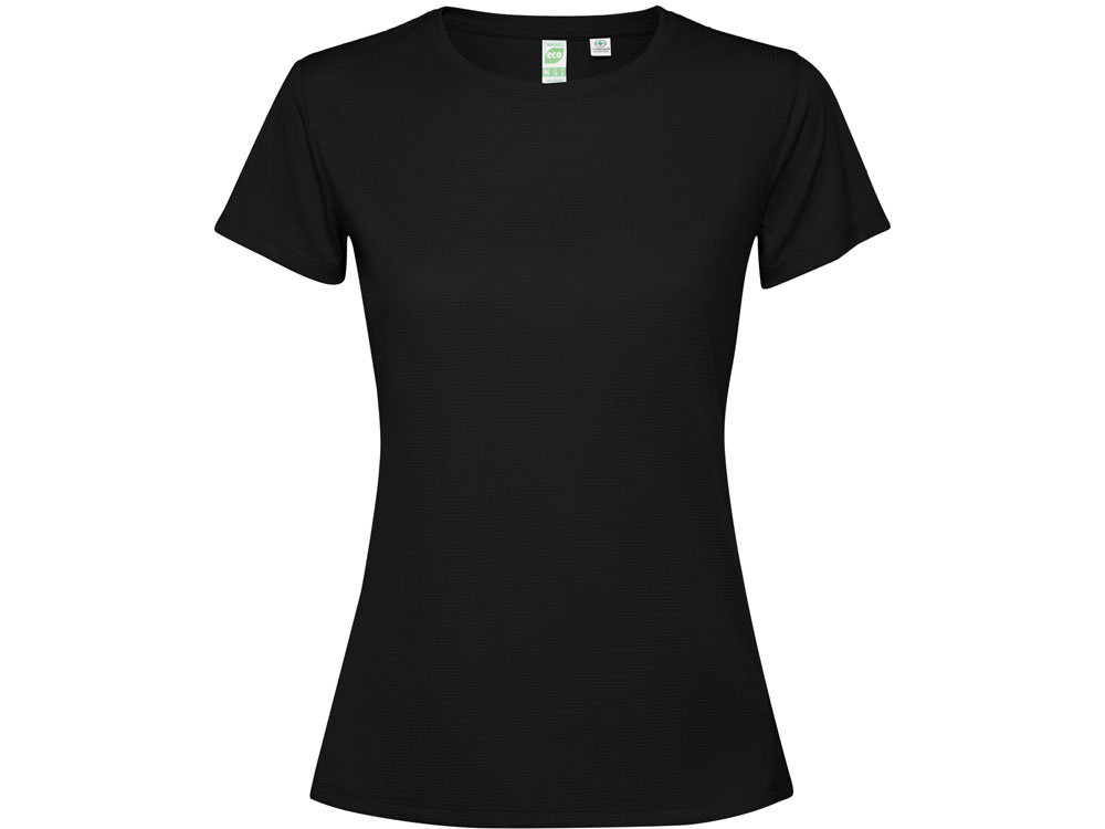 Женская футболка с коротким рукавом из технологичного полотна. Отстрочки в тон. Спинка с удлинением. Боковые швы со смещением вперед.