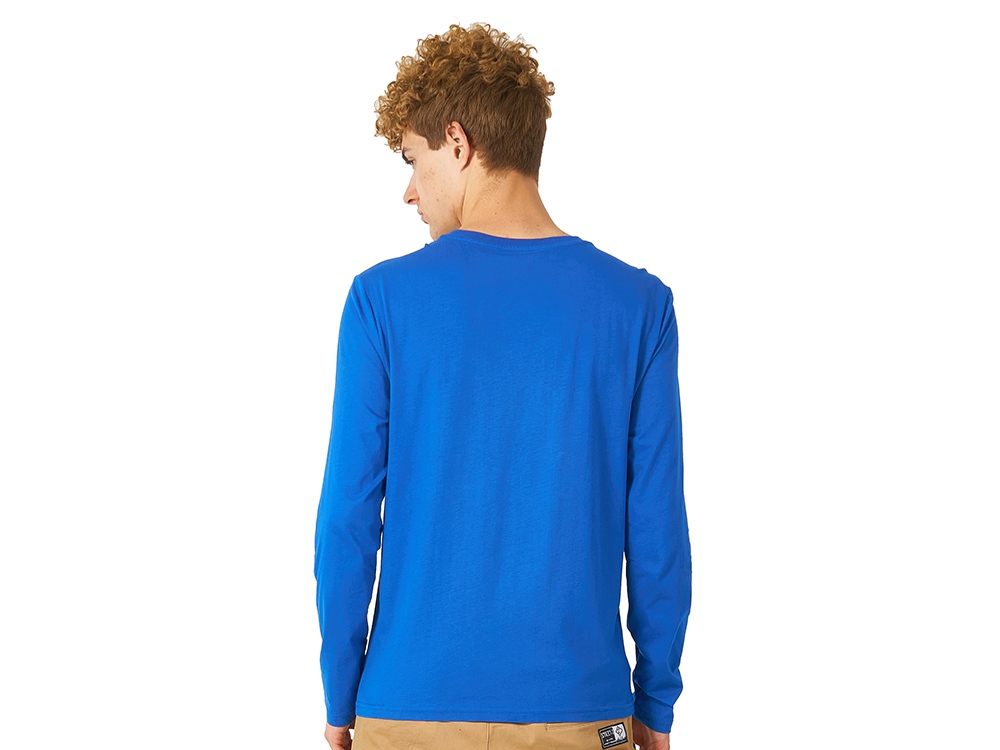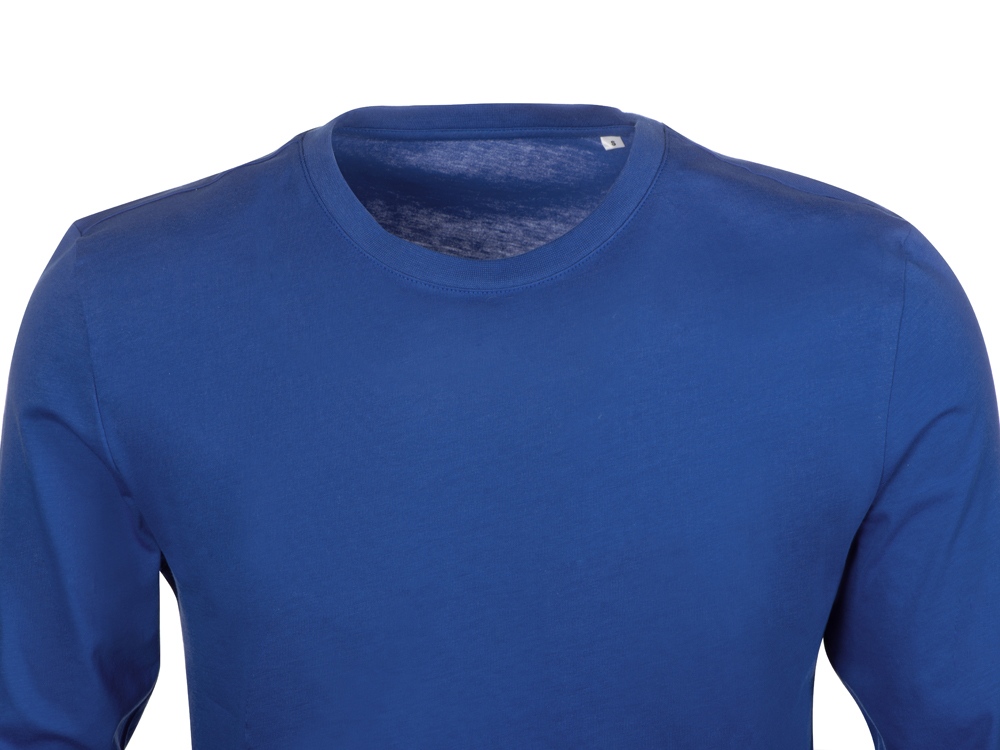 Футболка с длинным рукавом комфортной посадки с боковыми швами. Горловина обработана рибом 1х1 и тесьмой по спинке. Футболка выполнена из хлопкового джерси.
