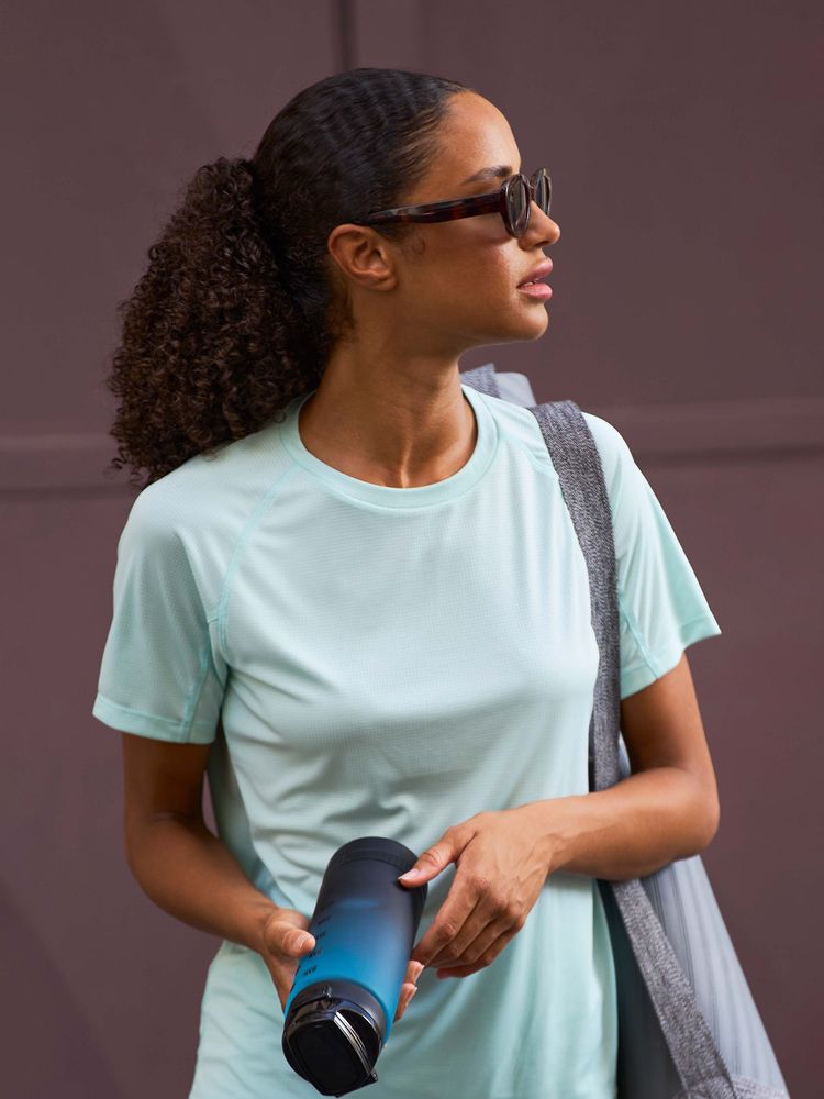 Женская спортивная футболка из дышащего и быстросохнущего материала.