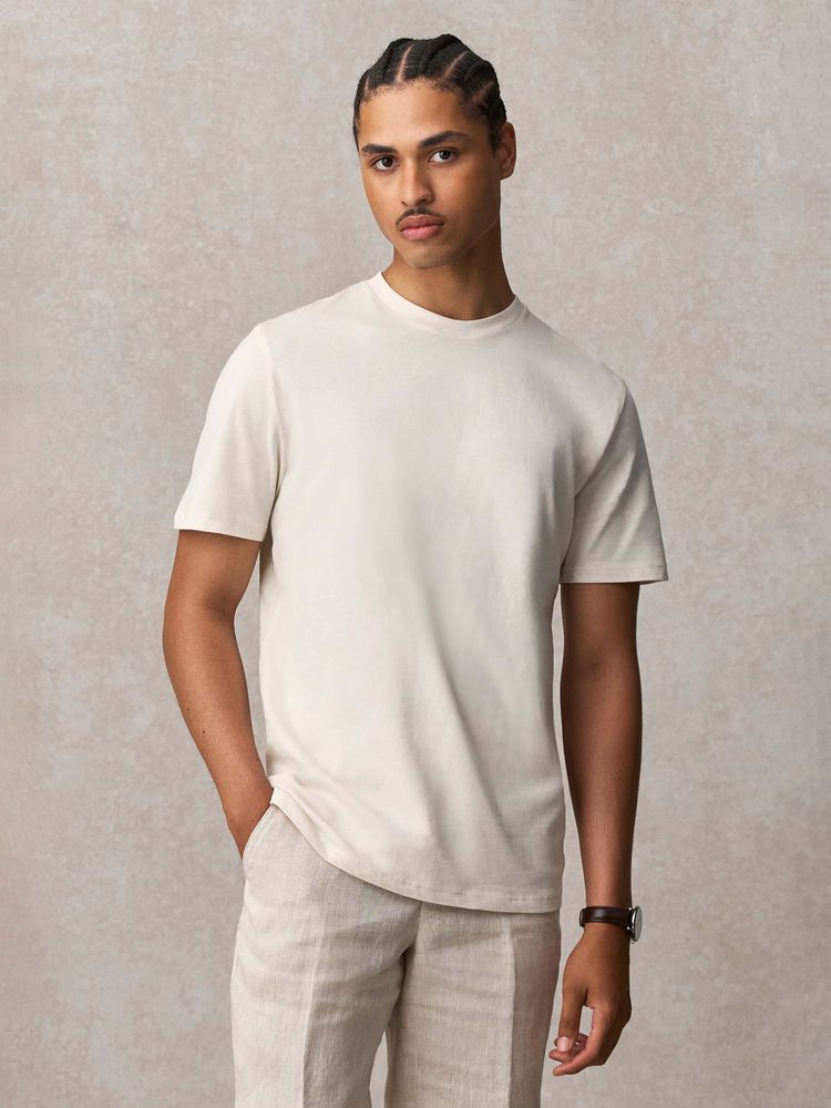 За счет идеальных пропорций гребенного хлопка и переработанного полиэстерав составе, а также благодаря дополнительным обработкам полотно обладает повышенной мягкостью, шелковистостью и очень приятно на ощупь. Кроме того футболка меньше мнется, не теряет форму после стирок и обладает высоким показателем Qmax — коэффициента мгновенной теплопроводности, который показывает, как быстро ткань забирает тепло от кожи. Именно он обеспечивает ощутимый эффект свежести и прохлады при первом прикосновении к ткани.