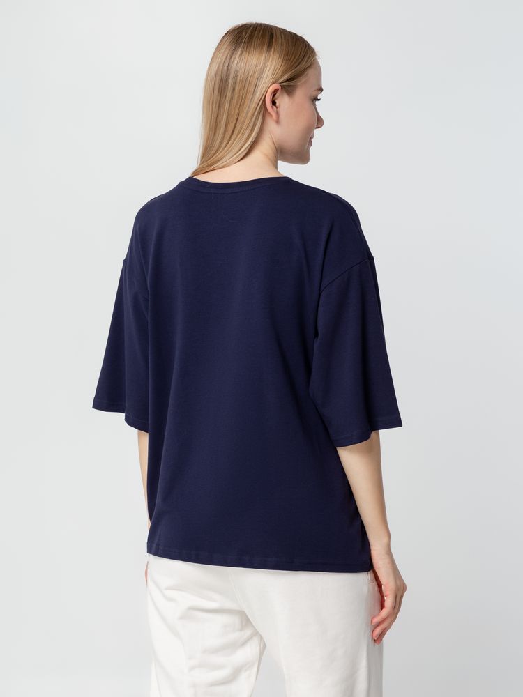Футболка унисекс оверсайз Street Vibes, темно-синяя купить оптом и в розницу с нанесением логотипа в Москве