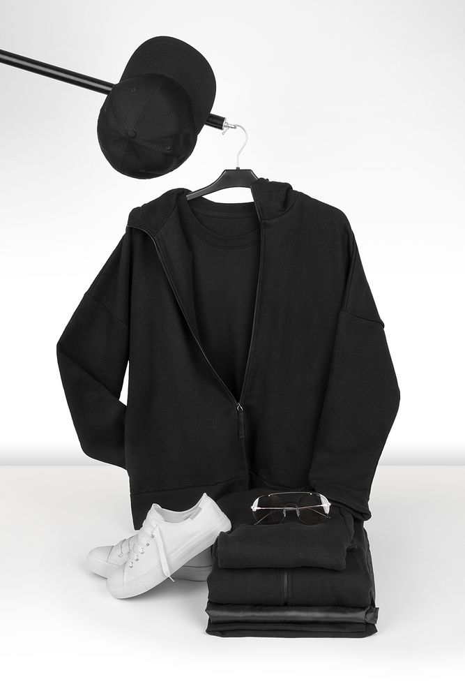 Базовая повседневная одежда актуального покроя в стиле унисекс разработана в рамках единой коллекции и легко собирается в комплекты. Специально спроектированные лекала и технологии пошива открывают простор для любых вариантов кастомизации и нанесения изображений. На видимой части изделий нет лейблов с айдентикой бренда, а название бренда с уходника легко удалить.
