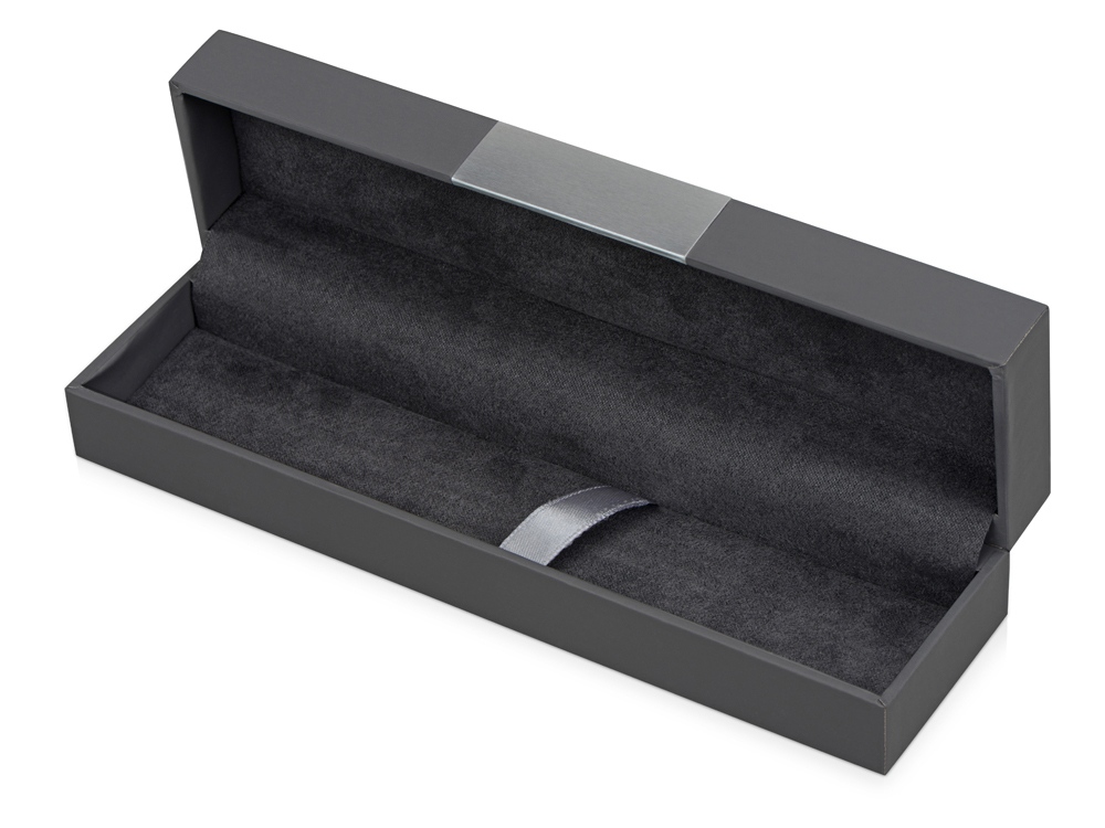 Футляр для ручки изготовлен из прочного картона с матовым покрытием, имитирующим кожу. Декоративная серебристая вставка придаёт футляру премиальный вид. Внутренняя часть отделана велюром, на котором ручка фиксируется при помощи атласной ленты. - Футляр для одной ручки или механического карандаша. - Максимальная длина вложения - до 17 см.