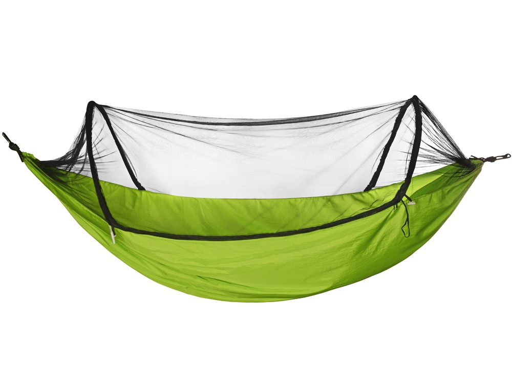 Гамак с защитной сеткой - отличный вариант для любителей путешествий и активного отдыха на природе. Он выполнен из крепкого нейлона и выдерживает до 250 кг. Москитная сетка эффективно защищает от насекомых. С помощью данного гамака вы сможете обеспечить себе комфортное место для сна и отдыха. Гамак легко закрепляется на деревьях или каких-либо опорах, с помощью карабинов и веревок, которые идут в комплекте. Легко складывается в индивидуальный мешок, на котором отлично будет смотреть логотип или корпоративный слоган.