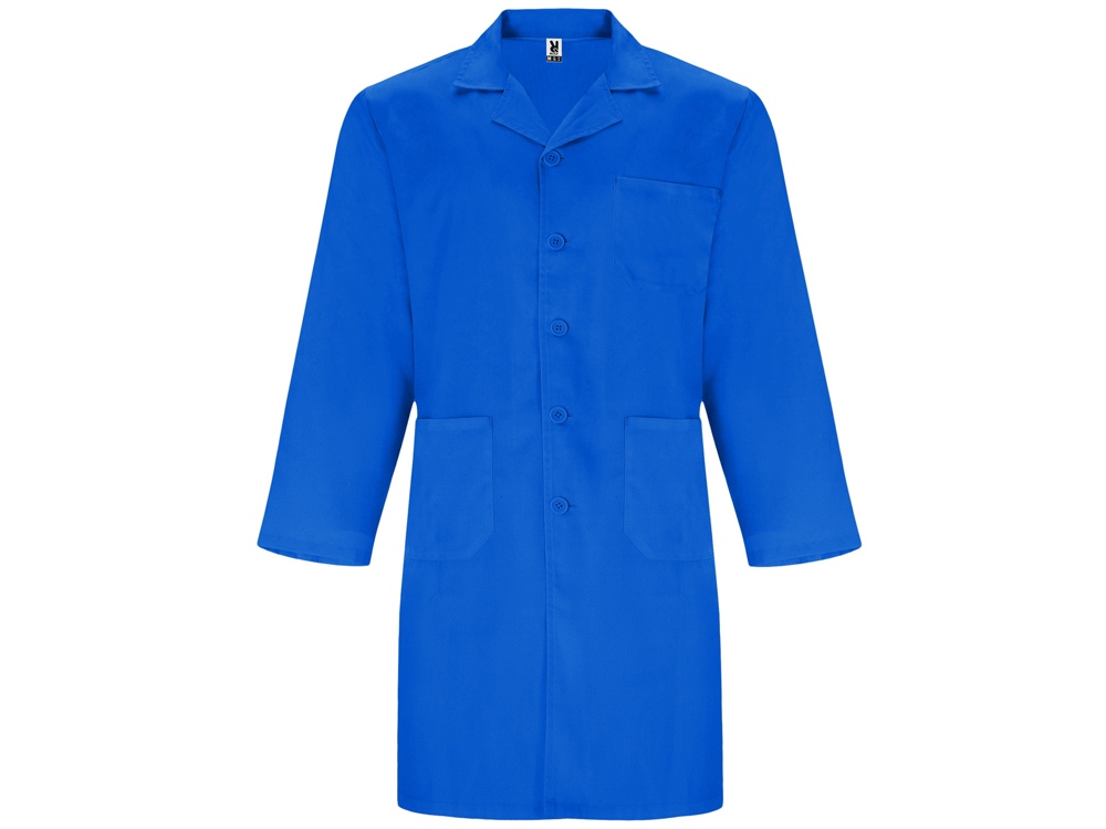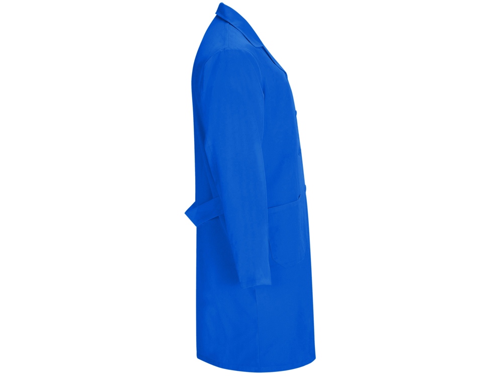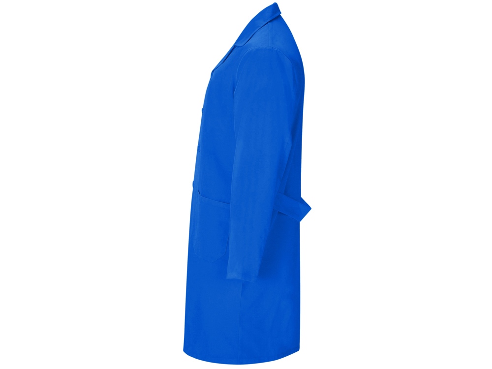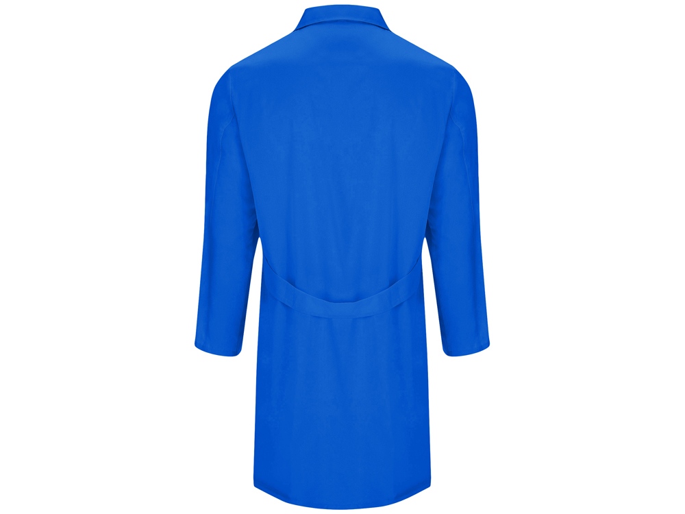 Халат для персонала с длинными рукавами. · Воротник с лацканами. · Центральная застежка на 5 пуговиц в тон. · Один нагрудный карман и два кармана по бокам. · Пояс сзади.