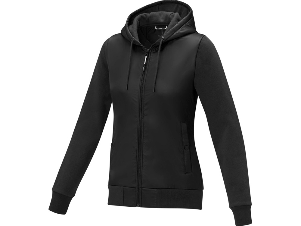 Открытая пластиковая застежка-молния по центру спереди. Карманы спереди. Внутренний карман. Эластичные манжеты и нижний край из гладкого трикотажа. Петля для подвешивания с фирменной символикой. Капюшон на кулиске. Внутренняя сторона покрыта ворсом. Фигурные швы и зауженная талия для идеальной посадки. Удобный бегунок застежки-молнии. Главный лейбл нанесен методом термоприклеивания, удобным для размещения рисунков на ткани.