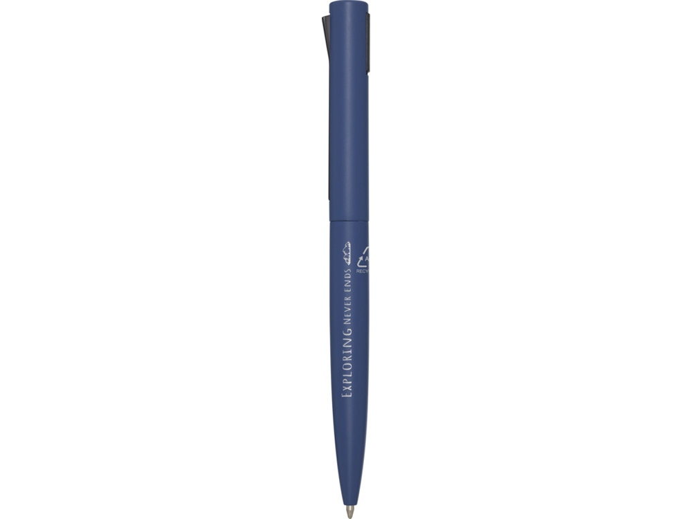 Шариковая ручка, верхняя часть корпуса которой изготовлена из переработанного пластика, а нижняя часть — из переработанного алюминия. Зажим изготовлен из железа. Цвет чернил: черный. Длина непрерывной линии: 1000 метров. Размер пера: 1,0 мм. Recycled Aluminium.