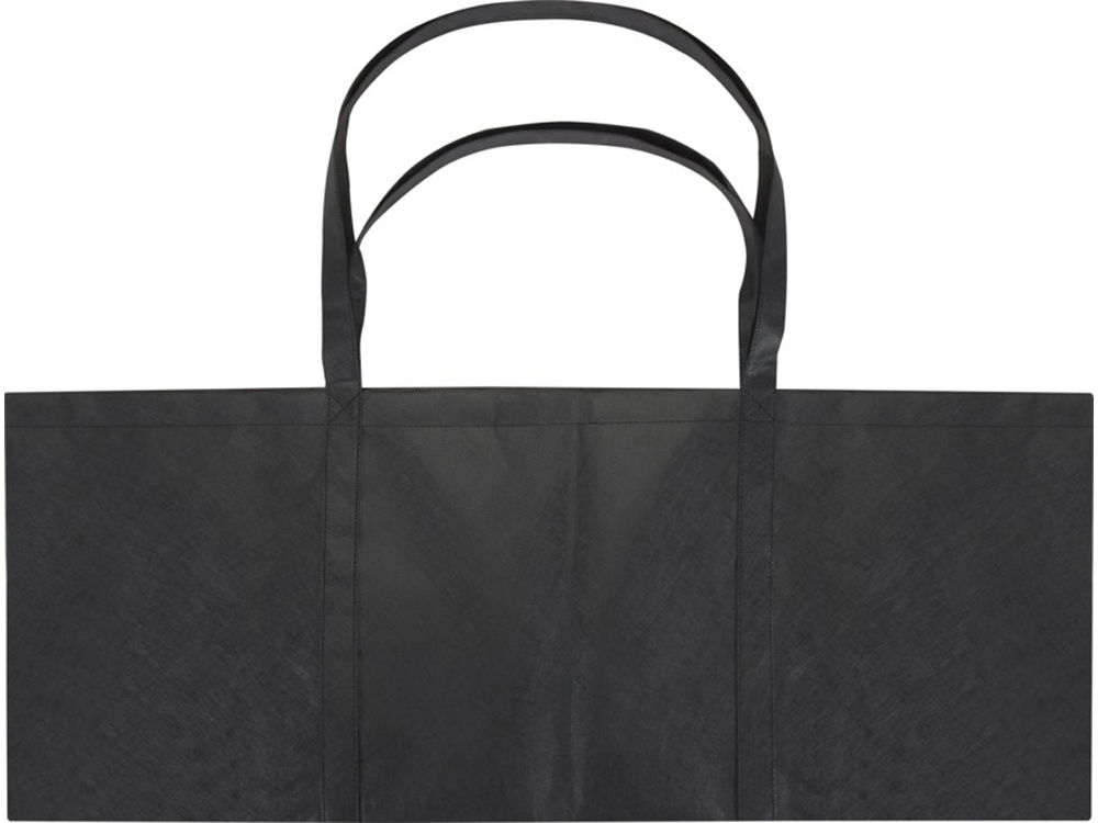 Сделанная из прочного и стойкого к разрывам нетканого RPET, эко-сумка Jumbo из переработанного материала, сертифицированного согласно GRS, имеет очень большую вместимость до 65 литров и прекрасно подходит для различных мероприятий, таких как походы за покупками в супермаркет или на пляж и пикник. Оснащена усиленными короткими ручками (24 см) и длинными ручками (37 см) для максимального удобства переноски. Легко складывается и убирается, когда не используется. Выдерживает вес до 15 кг. GRS certified recycled polyester.