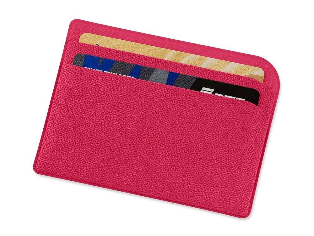 Футляр для кредитных карт с тремя карманами надежно защищает лицевую и оборотную часть карты. Нанесение возможно на обе стороны картхолдера.