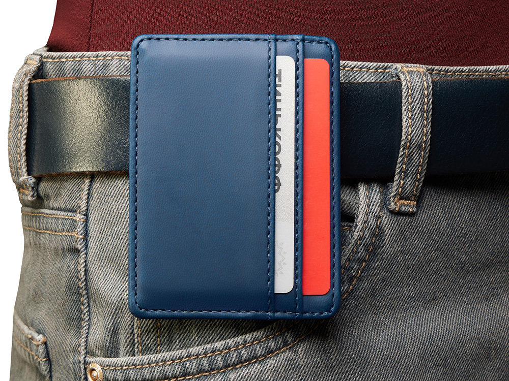 Картхолдер — стильное и практичное решение для деловых людей. В отличие от классических кошельков и портмоне он занимает совсем немного места и с лёгкостью поместится в карман. Данная модель благодаря зажиму на обороте также удобно цепляется за ремень джинс или на ланъярд. Картхолдер вмещает две карты и имеет отделение для купюр. Чтобы ещё больше порадовать клиентов, картхолдер можно вручить не пустым, а вложив в него что-нибудь полезное, например, скидочную карту или свою визитку, чтобы ваши контакты всегда были под рукой. Строгий и лаконичный дизайн Функциональный бизнес-подарок