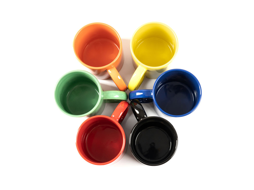 Цветная керамическая чашка 370 мл. Поставляется в белой коробке. Продукт подходит для использования в микроволновой печи и посудомоечной машине.