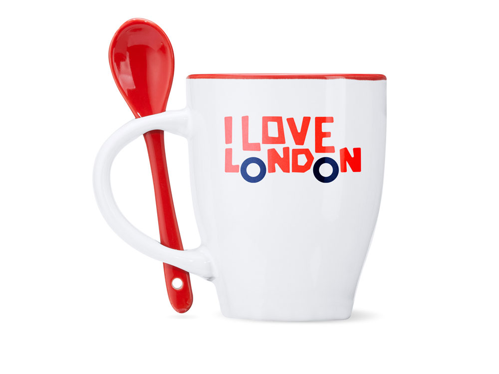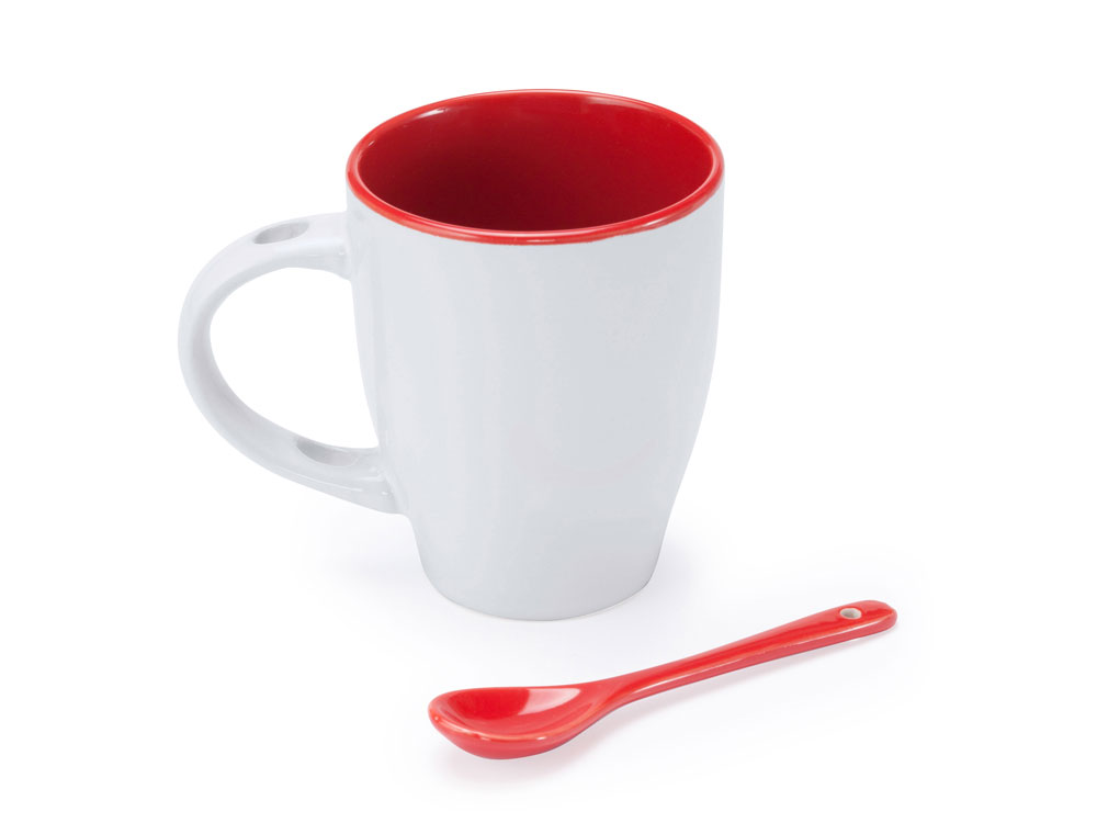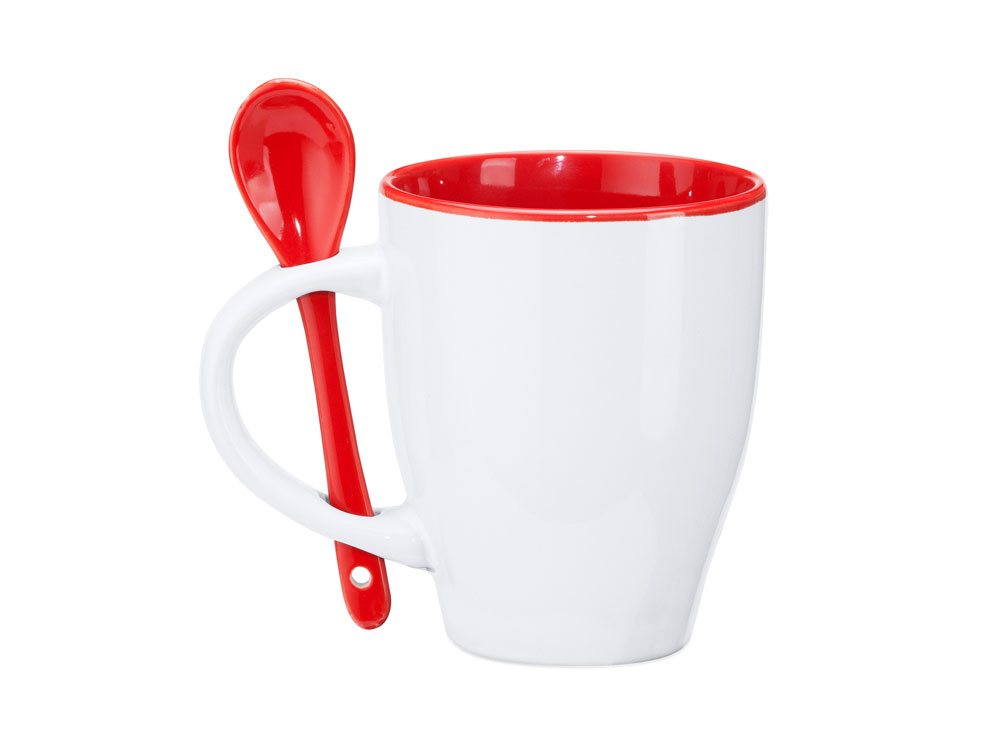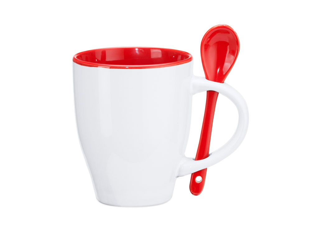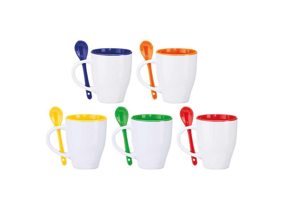 Керамическая кружка емкостью 350 мл. Цветная внутренняя часть и ложка в тон. Продукт подходит для использования в микроволновой печи и посудомоечной машине.