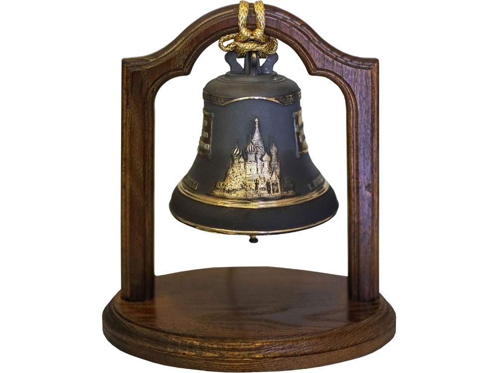 Колокол сувенирный весом 1кг Царский на дубовой подставке. Поверхность колокола матированная с вызолочением. Настольные колокола делают те же производства, что льют и большие колокола для российских церквей. Поэтому они и звучат тем неповторимым малиновым звоном, который всегда ценился в отечественных колоколах. Настольный колокол - это ни только прекрасная интерьерная композиция, но и просто живая” частичка России. Ударьте в него, закройте глаза и слушайте, слушайте...