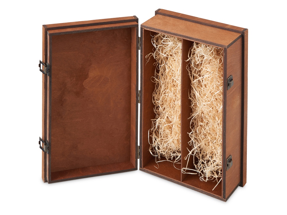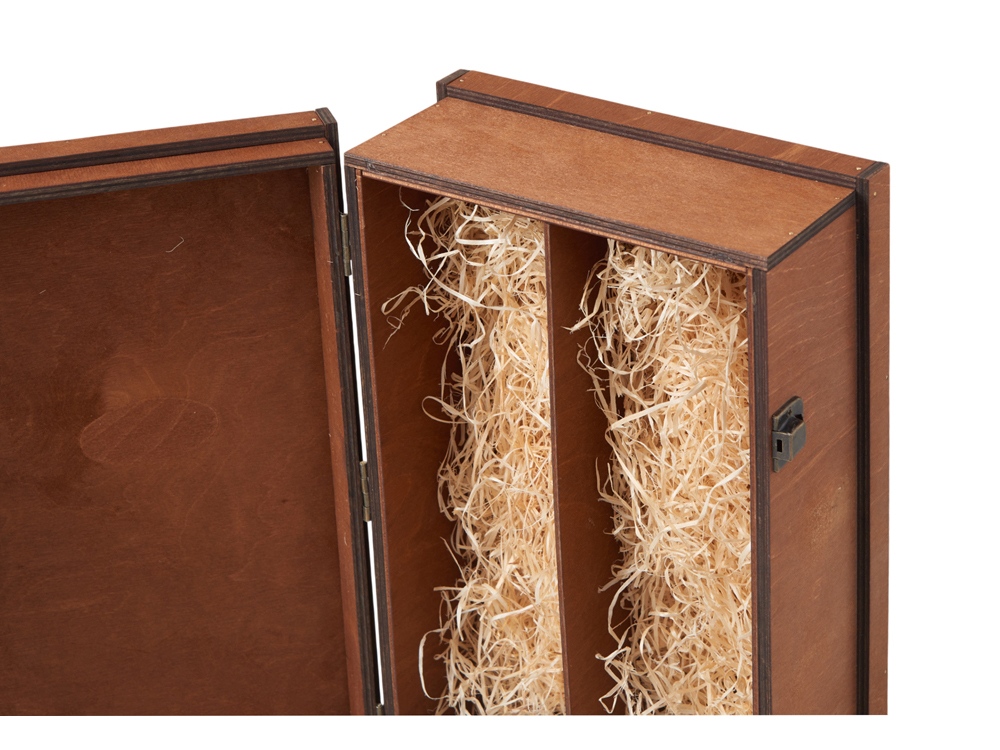 Универсальная деревянная коробка станет превосходным дополнением к вашему подарку. Разработанная для удобного и безопасного размещения двух стандартных бутылок, она обеспечивает не только надежную транспортировку, но и эффектную презентацию. После торжества коробка может служить для хранения или как элемент декора, продолжая радовать своего владельца. - натуральные материалы; - металлические замочки; - стильный дизайн;