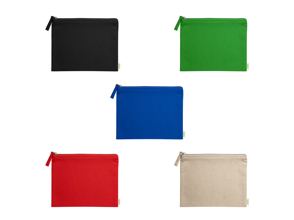 Косметичка из 100% органического хлопка плотностью 180 г/м² с хлястиком в ​​тон.