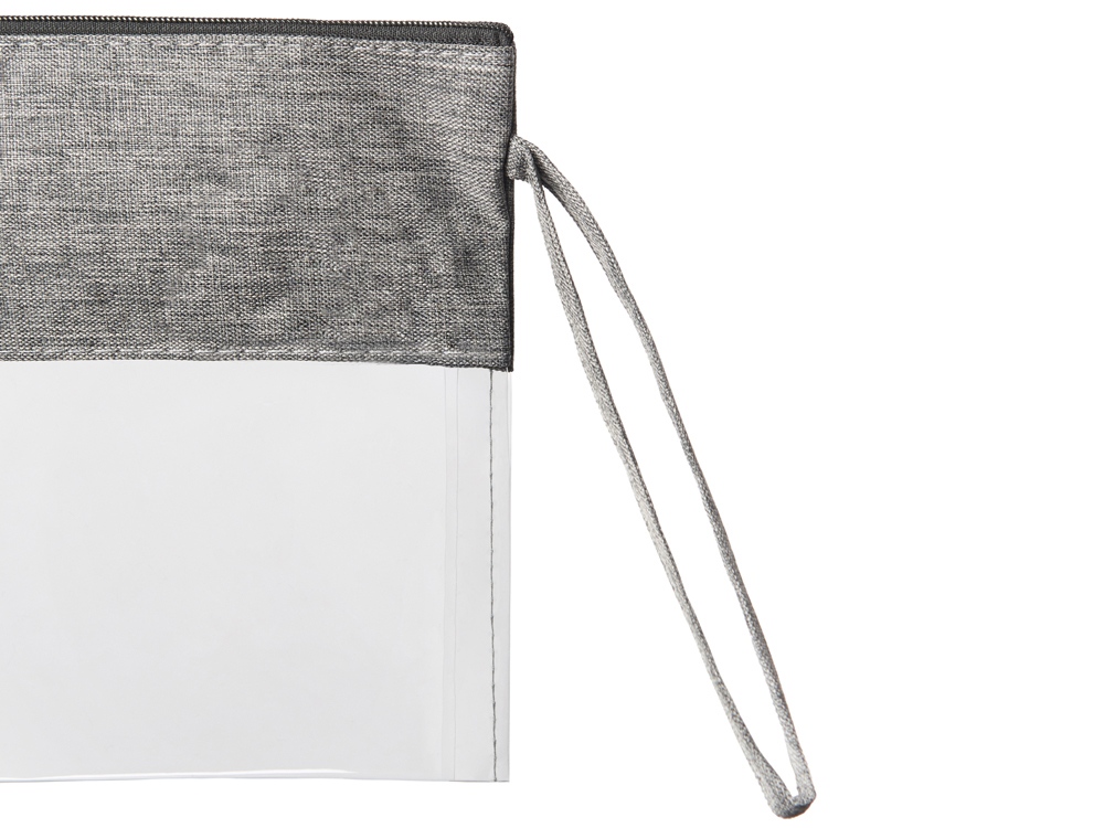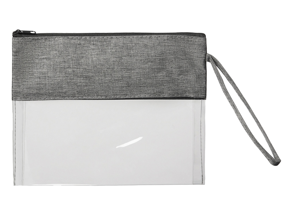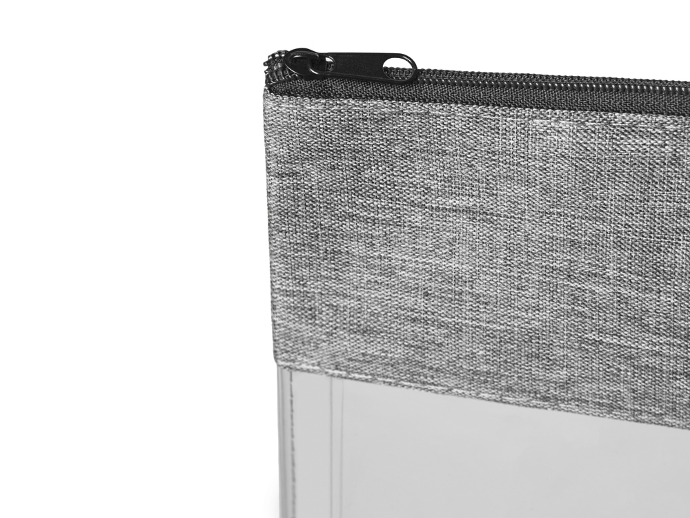 Косметичка из PVC и ткани Leony, прозрачный/темно-серый купить оптом и в розницу с нанесением логотипа в Москве