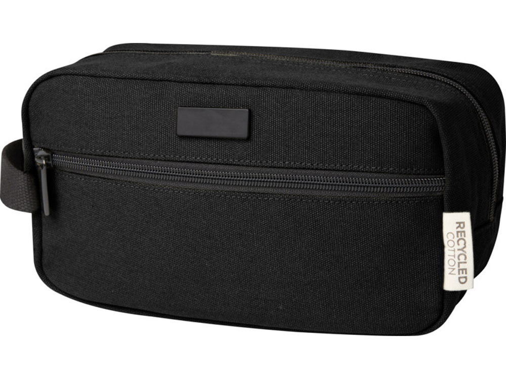 Косметичка из переработанного холста, сертифицированного по стандарту GRS, с подкладкой из переработанного РЕТ-пластика. Имеет передний карман на молнии и одно главное отделение на молнии с карманами для организации, а также удобную лямку. Декоративная металлическая пластина может придать логотипу сияние благодаря утонченному матовому покрытию. Емкость: 3,5 литр.