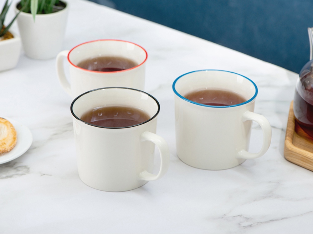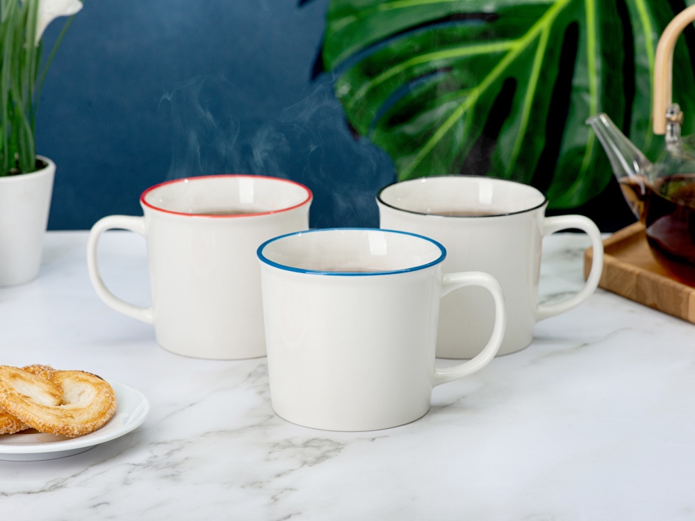 Кружка из костяного фарфора с выраженным рельефным ободком, окаймленным цветной контрастной полосой. Цвет полосы можно органично сочетать с цветом нанесенного логотипа, что придаст дизайну конечного продукта цельность облика. - удобная ручка - цветная контрастная полоса, которую можно сочетать с вашим лого - самый популярный объем — 360 мл