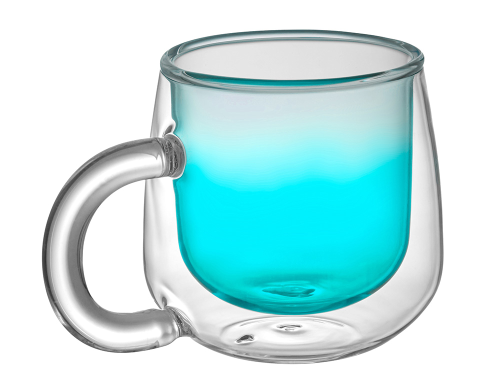 Стеклянная кружка Fog — стиль и функциональность - Объем: 370 мл — удобный размер для чая, кофе или любимого напитка. - Боросиликатное стекло: прочность, термостойкость, безопасность. - Широкая круглая ручка: эргономичный дизайн, приятно держать, выглядит трендово и стильно. - Плавный градиент: красивый переход цвета для эстетичного вида. - Двойные стенки: лучше сохраняет температуру напитка и защищает руки от перегрева. Современный дизайн и практичность в каждой детали. Не разрешается разогревать в микроволновой печи и мыть в посудомоечной машине.
