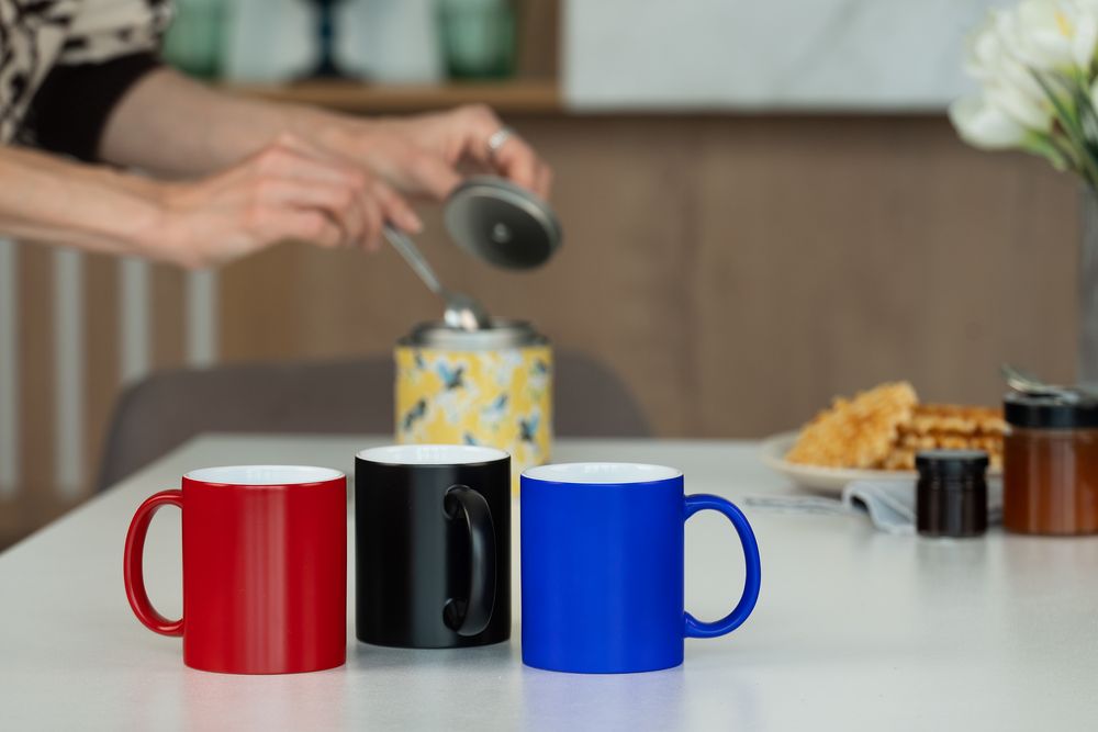 Кружка «Хамелеон» обладает интересным эффектом: стоит налить горячую воду, и ее цвет поменяется на белый.
