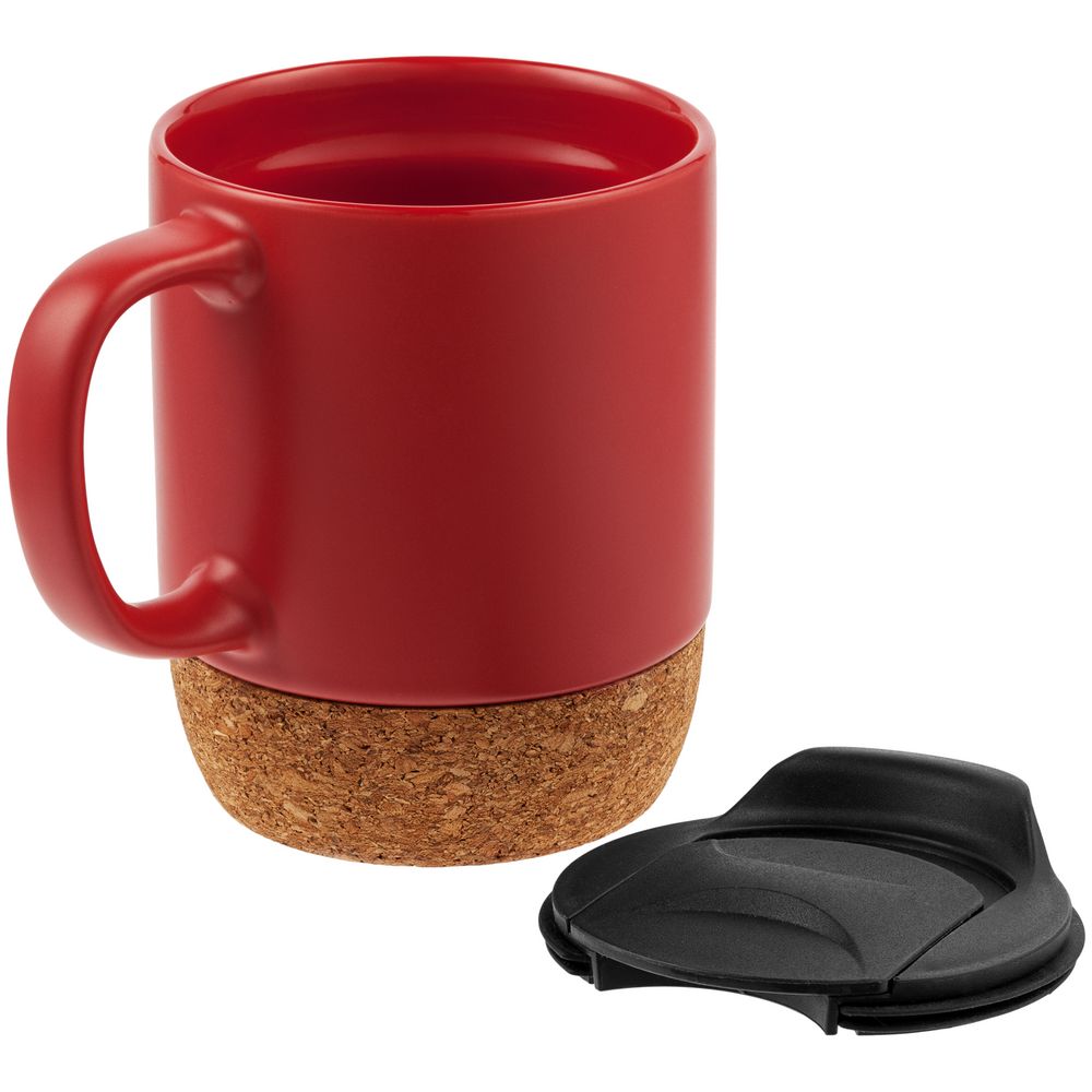 Кружка с пробковой подставкой Corky Walk, красная купить оптом и в розницу с нанесением логотипа в Москве