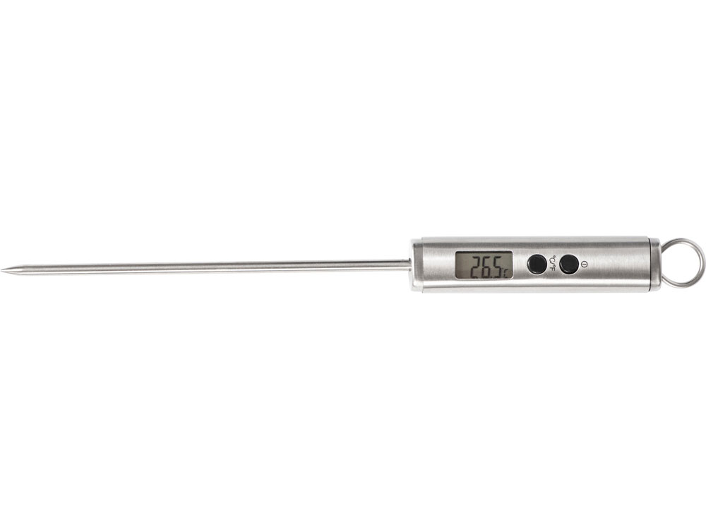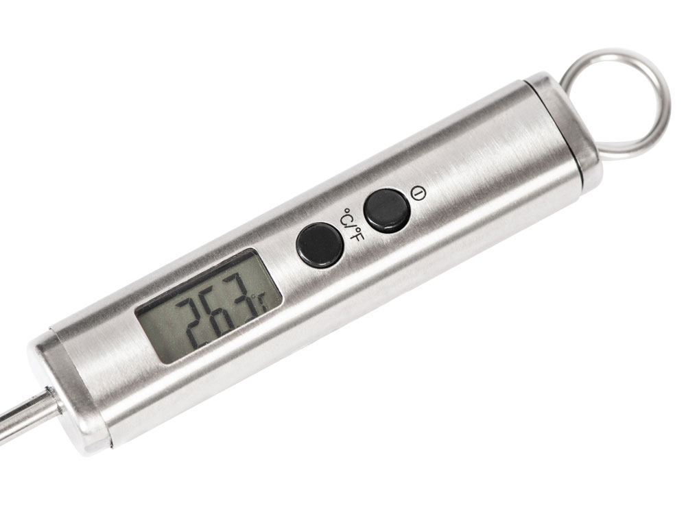Steak — кулинарный термометр, который не даст вам ошибиться во время готовки! С ним все блюда будут поданы в нужной кондиции, а стейки — прожарены ровно настолько, насколько вам нужно — просто воткните острие термометра в пищу, и на электронном табло появится температура. - нержавеющая сталь - температура использования: от -50 до +300℃ - работает от батарейки LR44 (в комплекте) - ручка для подвешивания