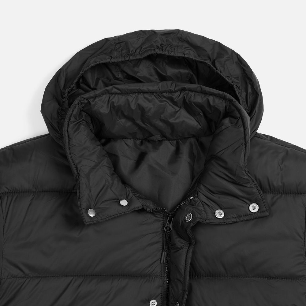 • Капюшон без подкладки убирается в воротник и плотно фиксируется на потайные кнопки