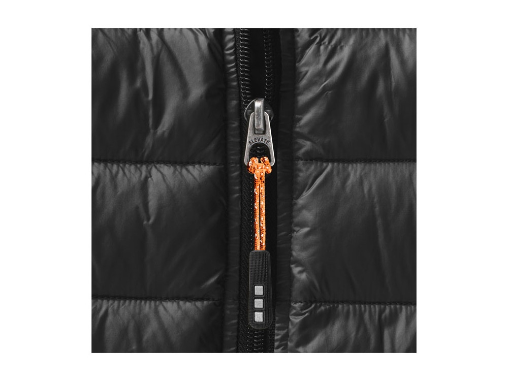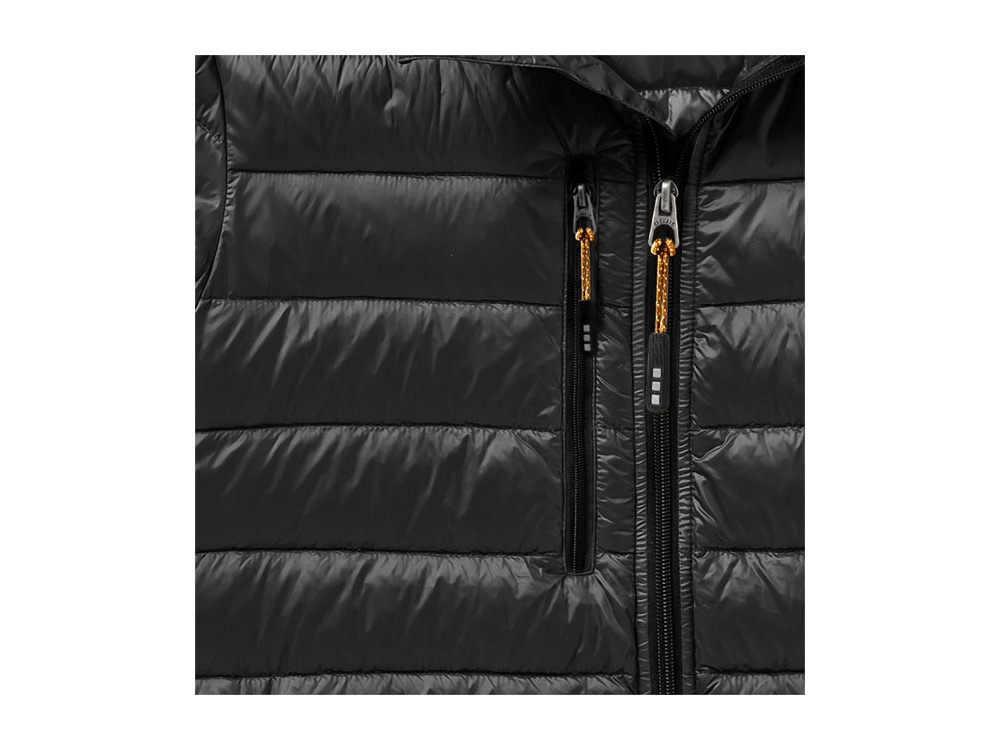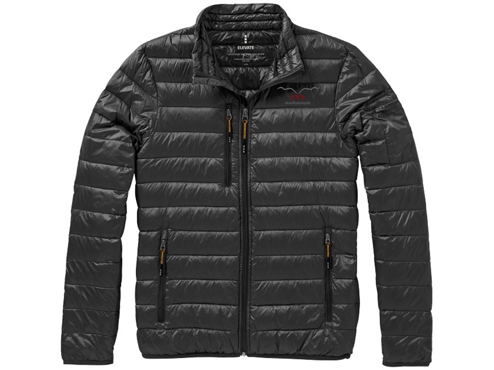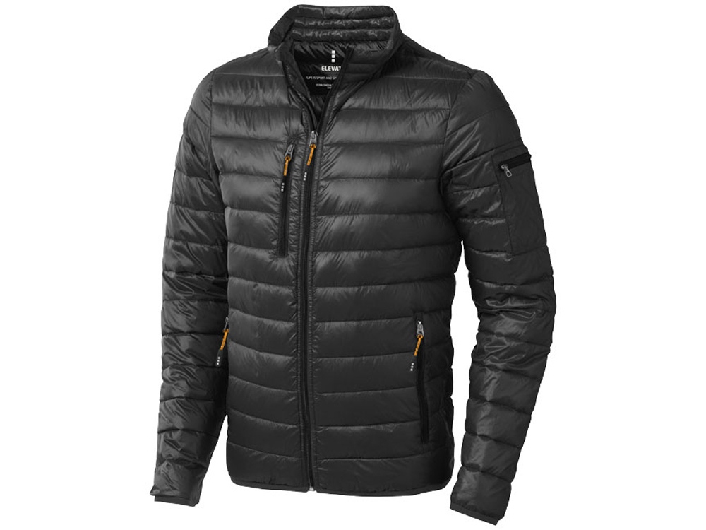 Легкая куртка Scotia. Стандартный покрой. Ткань не пропускает пух. Карманы для рук и нагрудный на молнии. Карман на рукаве на молнии можно использовать для нанесения. Резинка на манжетах и внизу куртки. Ремешки на собачку (второй комплект в цвете антрацит). Внутренний противоветровой клапан и защита подбородка. Ткань дышащая, ветронепроницаемая и влагоотталкивающая. Отражающий лого сзади. Легкий пуховик. Ткань из 100% нейлона с матовым и блестящим водоотталкивающим покрытием, 20D. 80% пух и 20% перо. 115 г/м².