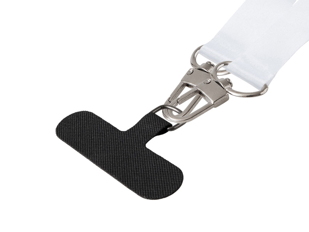 Ланъярд 2,5 см под сублимацию с 2-мя трендовыми карабинами и узким держателем для телефона из ПЭ купить оптом и в розницу с нанесением логотипа в Москве