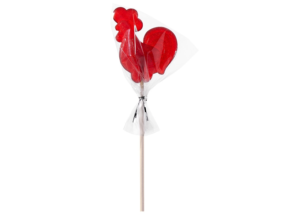 Леденец Петушок, красный со вкусом клубники, 21 гр. купить оптом и в розницу с нанесением логотипа в Москве