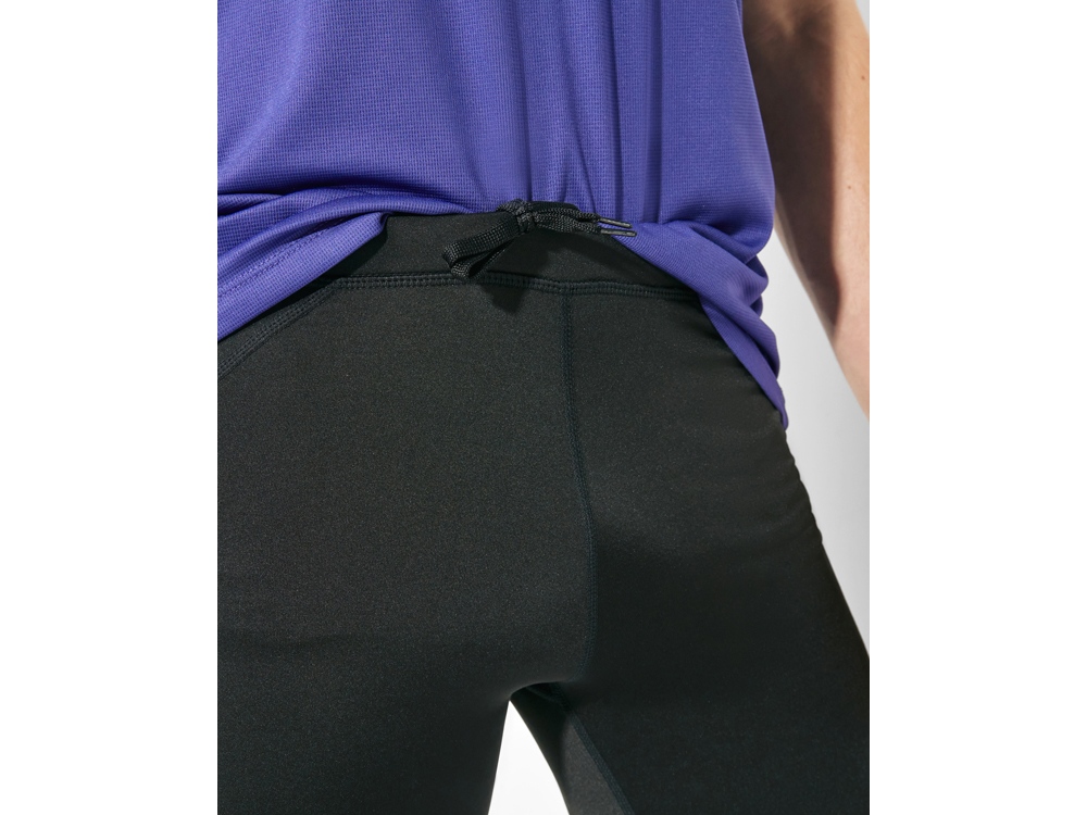 Длинные мужские легинсы с эластичным поясом с внутренним шнурком для регулировки. Светоотражающие детали. Карман сзади на молнии. Эластичная ткань, которая легко адаптируется к телу.